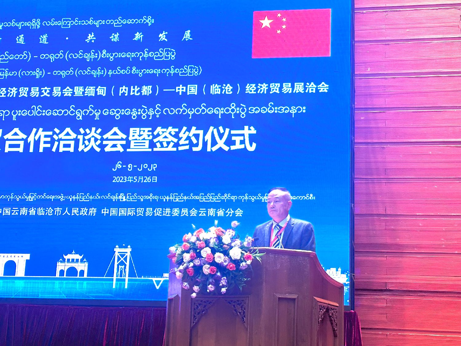 “临沧与缅甸掸邦山水相连,一市三口岸,可谓打开门就是缅甸,再走两步就是印度洋,对缅经贸合作的地缘优势明显。”谭书富表示,随着国家加快对缅开放的不断深入实施,综合交通网络的不断完善,沿边开放区位、中缅印度洋新通道等优势的叠加,临沧迎来了新的发展机遇。希望中缅企业家们通过此次洽谈会,搭建双边投资合作务实交流平台,有更多机会实地了解双方招商引资项目信息、优惠政策和投资环境,扩宽合作视野,拓展合作空间,创新合作方式,充分释放双边投资合作发展潜力,为缅甸经济社会发展和民生改善带来更大福祉,为中缅全面战略合作伙伴关系发展做出新的贡献。