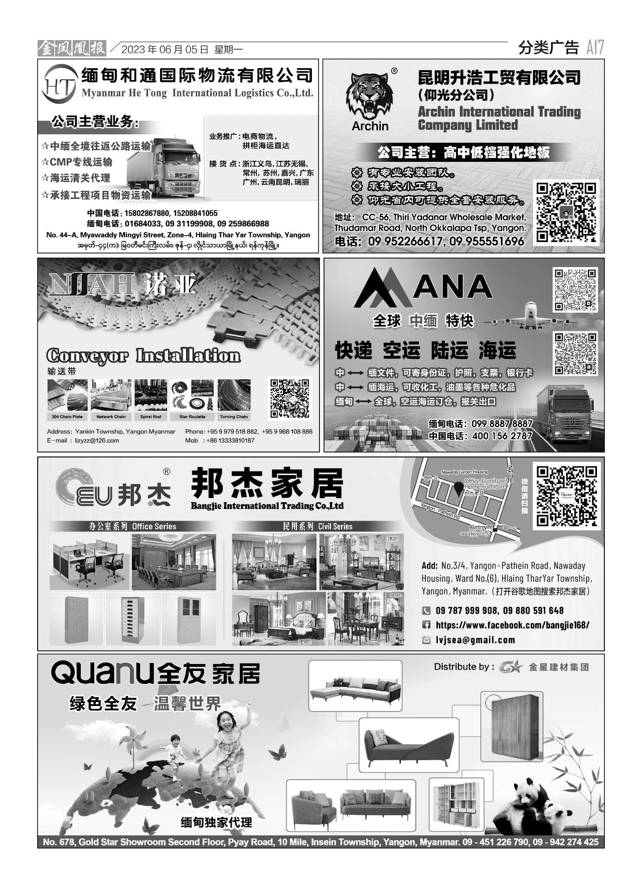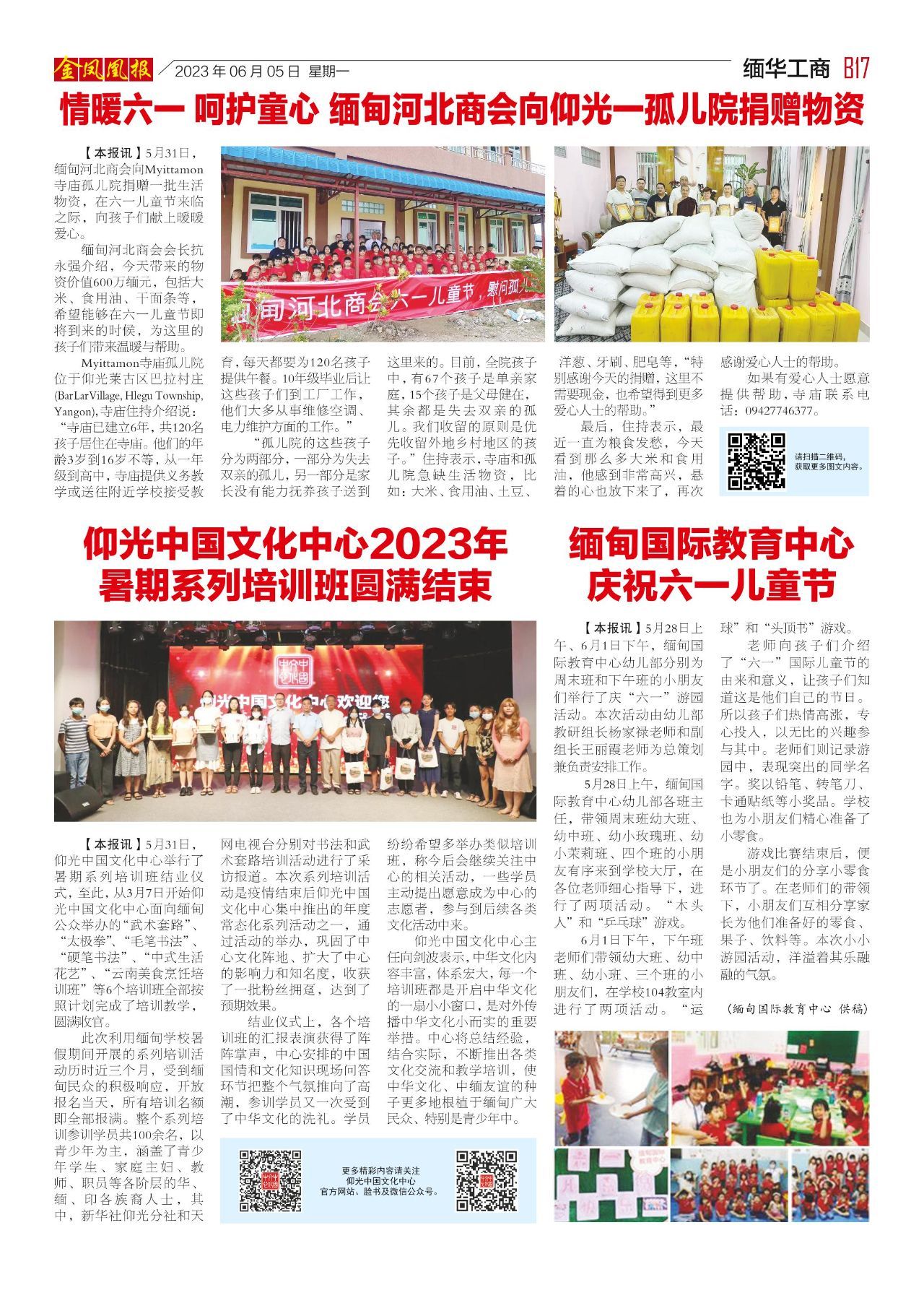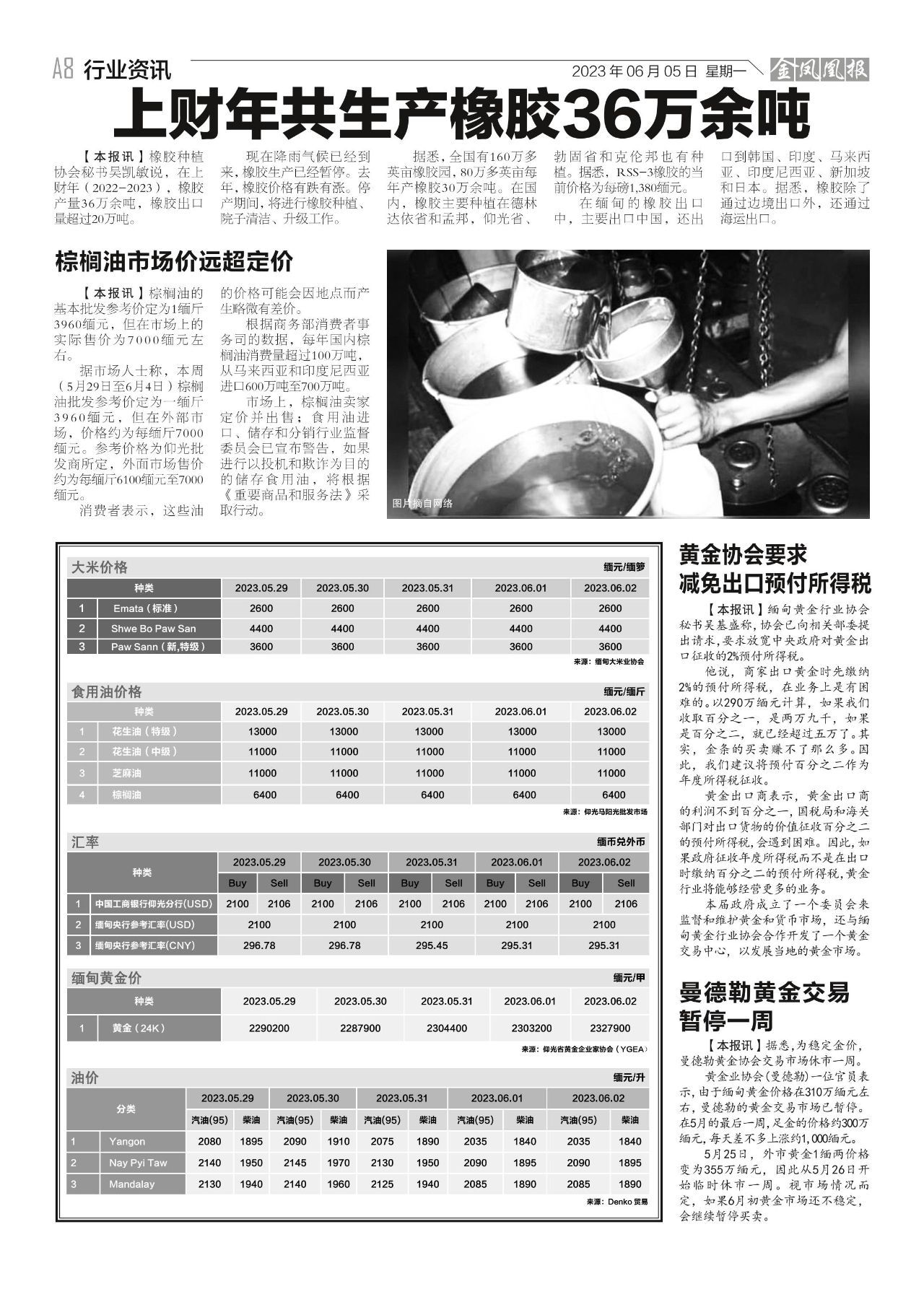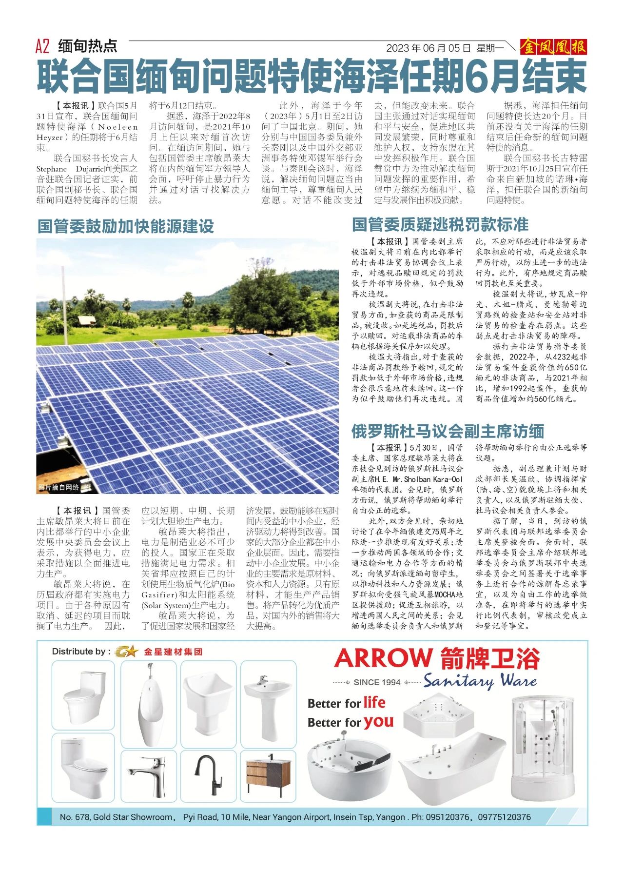 各位《金凤凰报》的知音,我们又通过声音和您相会,本周“声音周刊”将为您带来“缅中联手重拳打击电信诈骗”“钢铁行业鼓励进口人民币结算”以及旅游低迷影响蔓延一周重点新闻资讯。2023年6月5日出版的第622期《金凤凰报》电子报同时发送,为您带来关于缅甸最新最全的资讯。