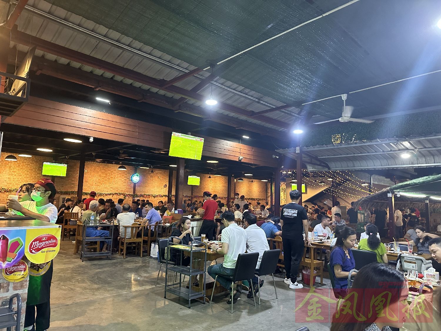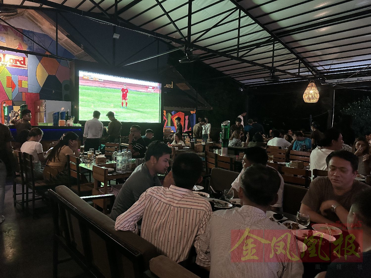 随着比赛开始,茵雅湖边的锦利烧烤店早已热闹非凡,院子里的电视转播让来就餐客人兴奋不已。“今天我们就是专门选在这里聚会,看着球过周末,太开心了。”几个正在看球的中资企业员工说。
