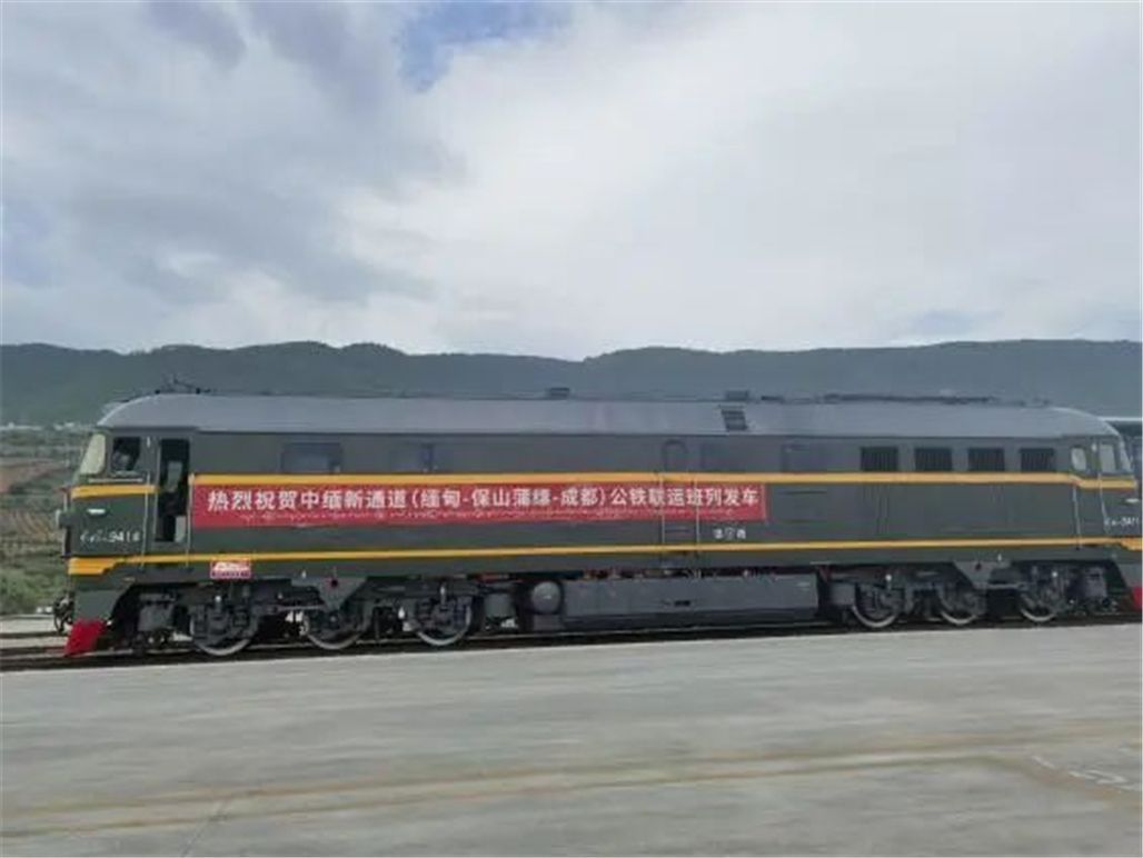 【缅甸金凤凰综合报道】据悉,6月16日上午,一列满载1000多吨缅甸铁矿石的货物列车,从中国云南省保山市蒲缥物流中心铁路专用线缓缓驶出,将在2天后抵达四川省成都市城厢站,这标志着中缅新通道(缅甸—保山蒲缥—成都)公铁联运班列首发,为中国西南地区与包括缅甸在内的东盟国家之间的经贸往来开辟了一条新线路。
