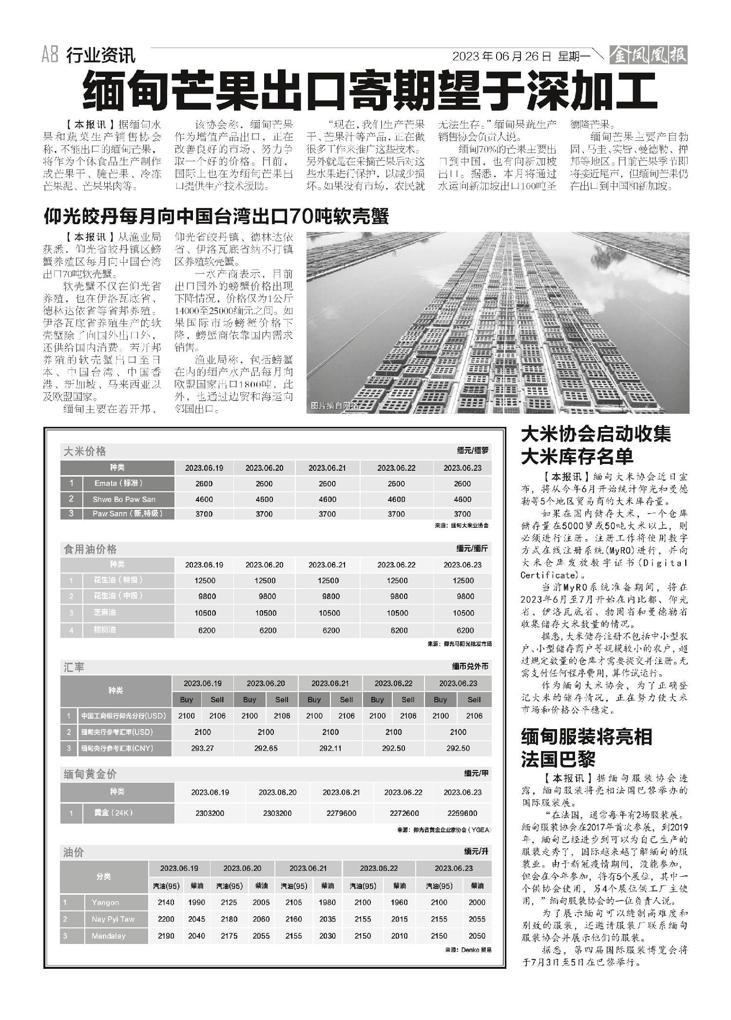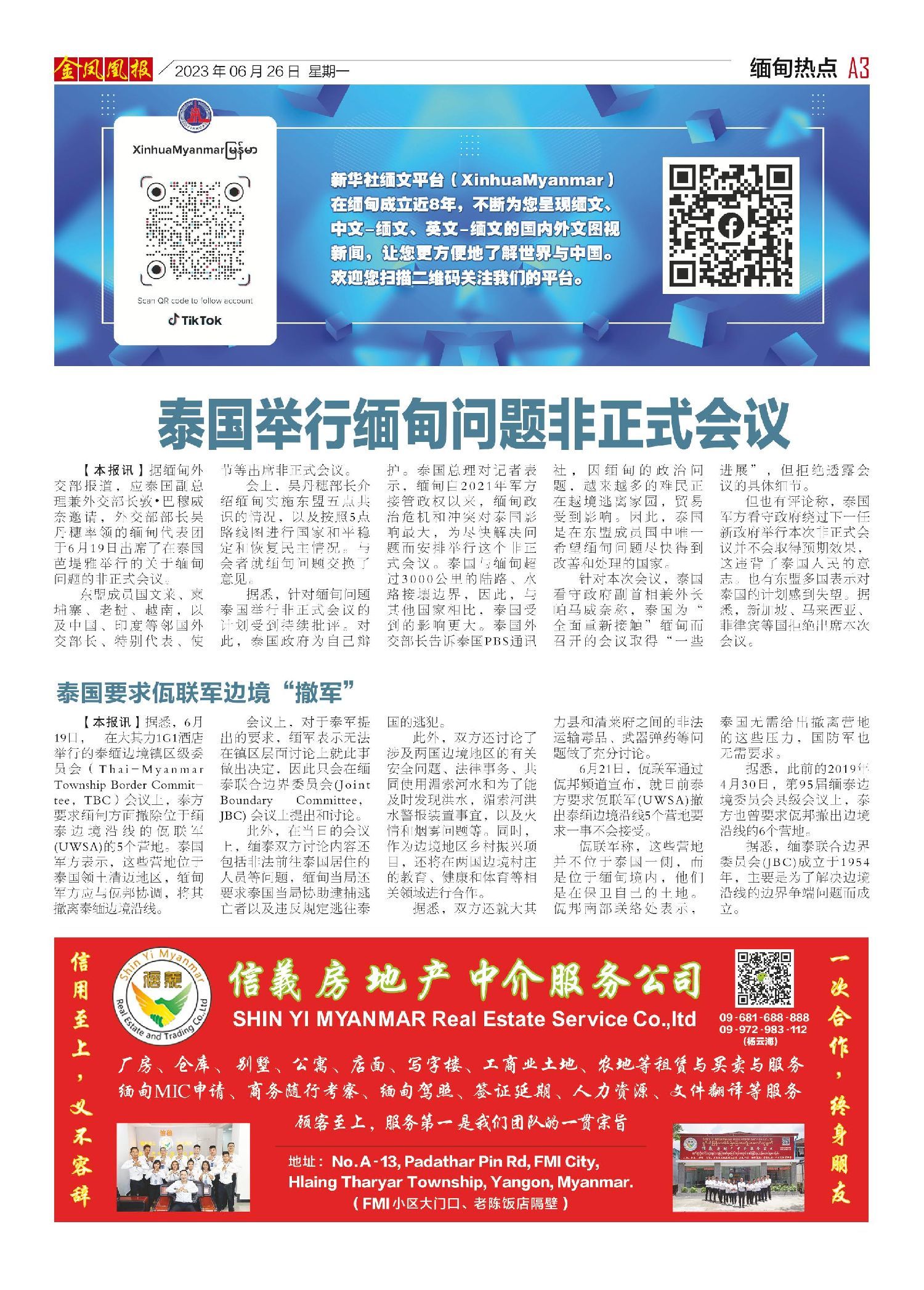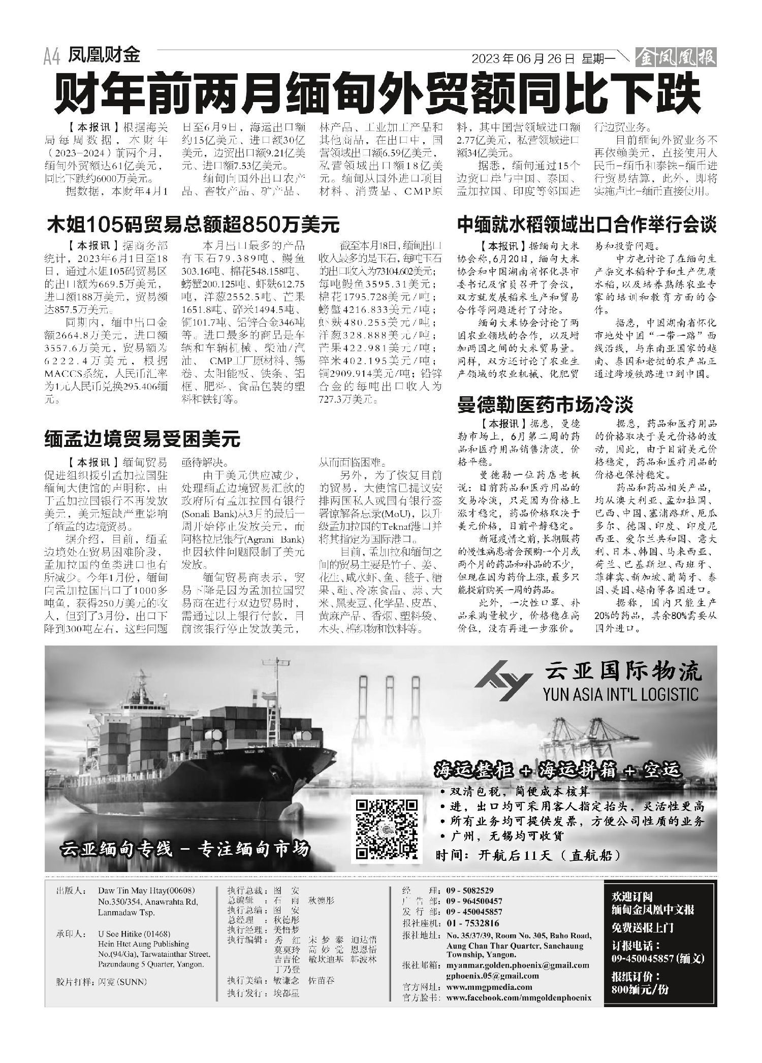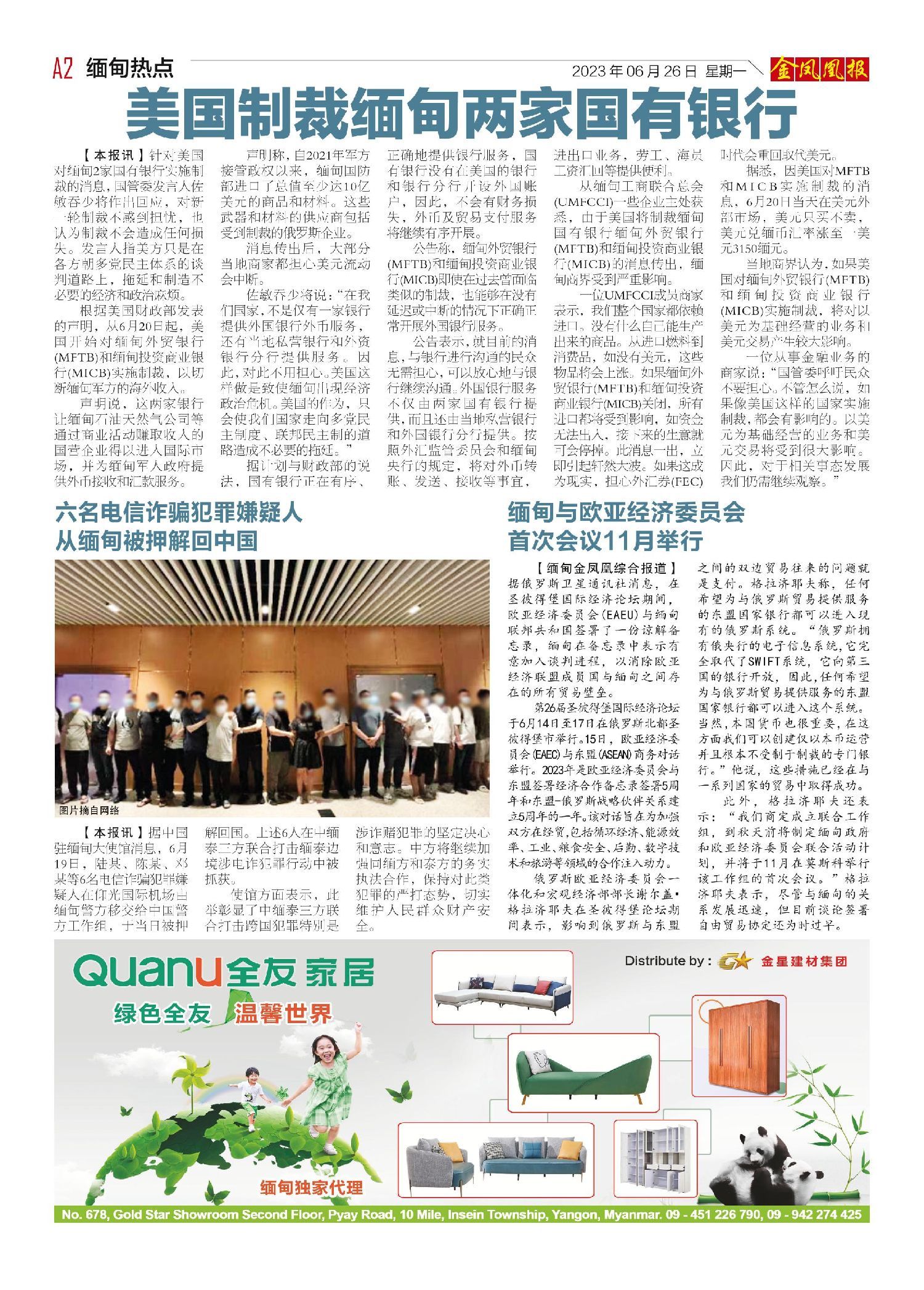 2023年6月26日出版的第625期《金凤凰报》电子报同时发送,为您带来关于缅甸最新最全的资讯。
