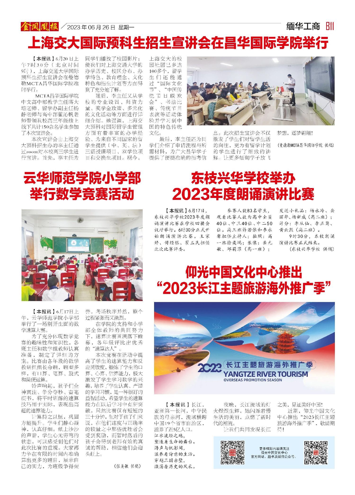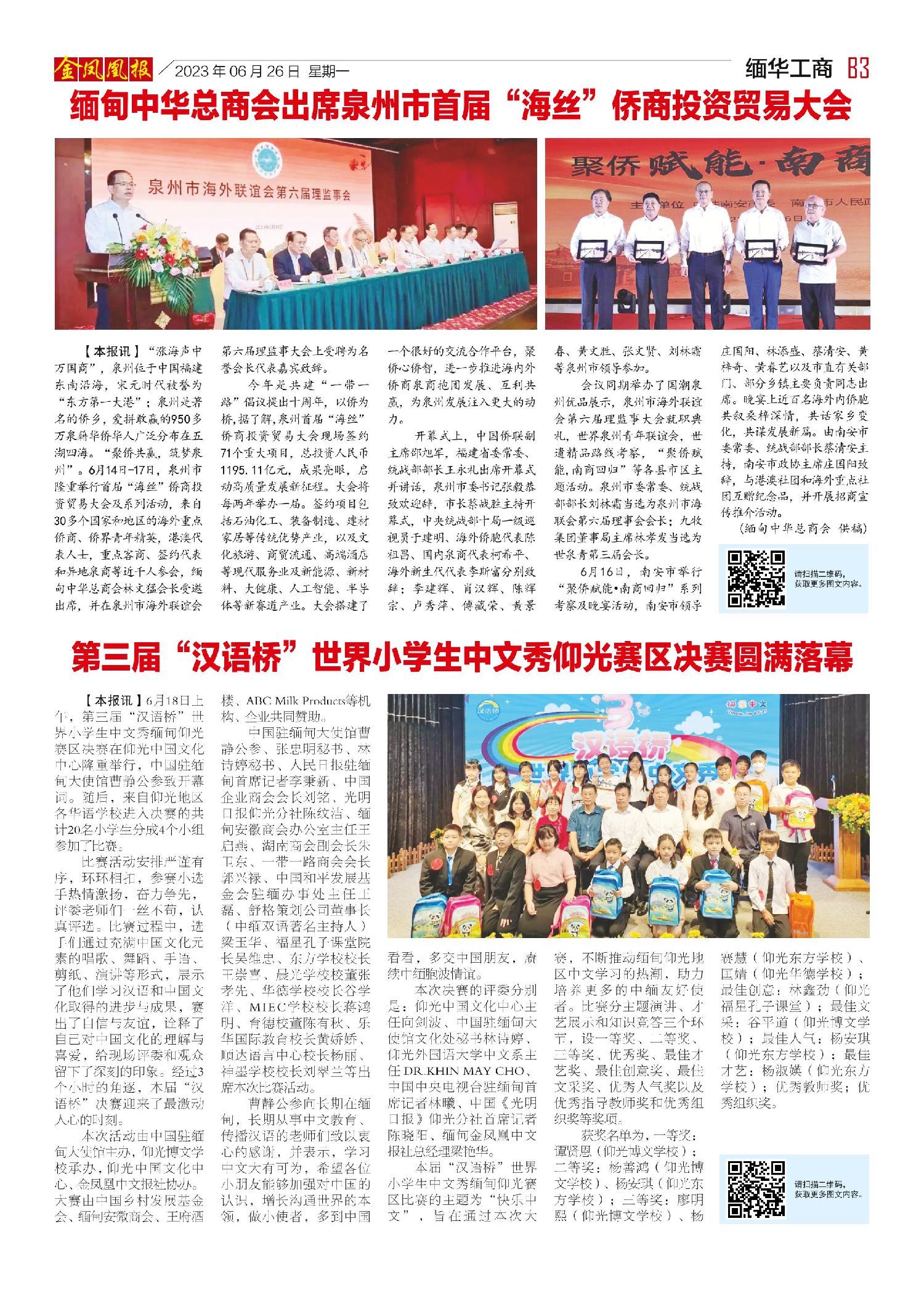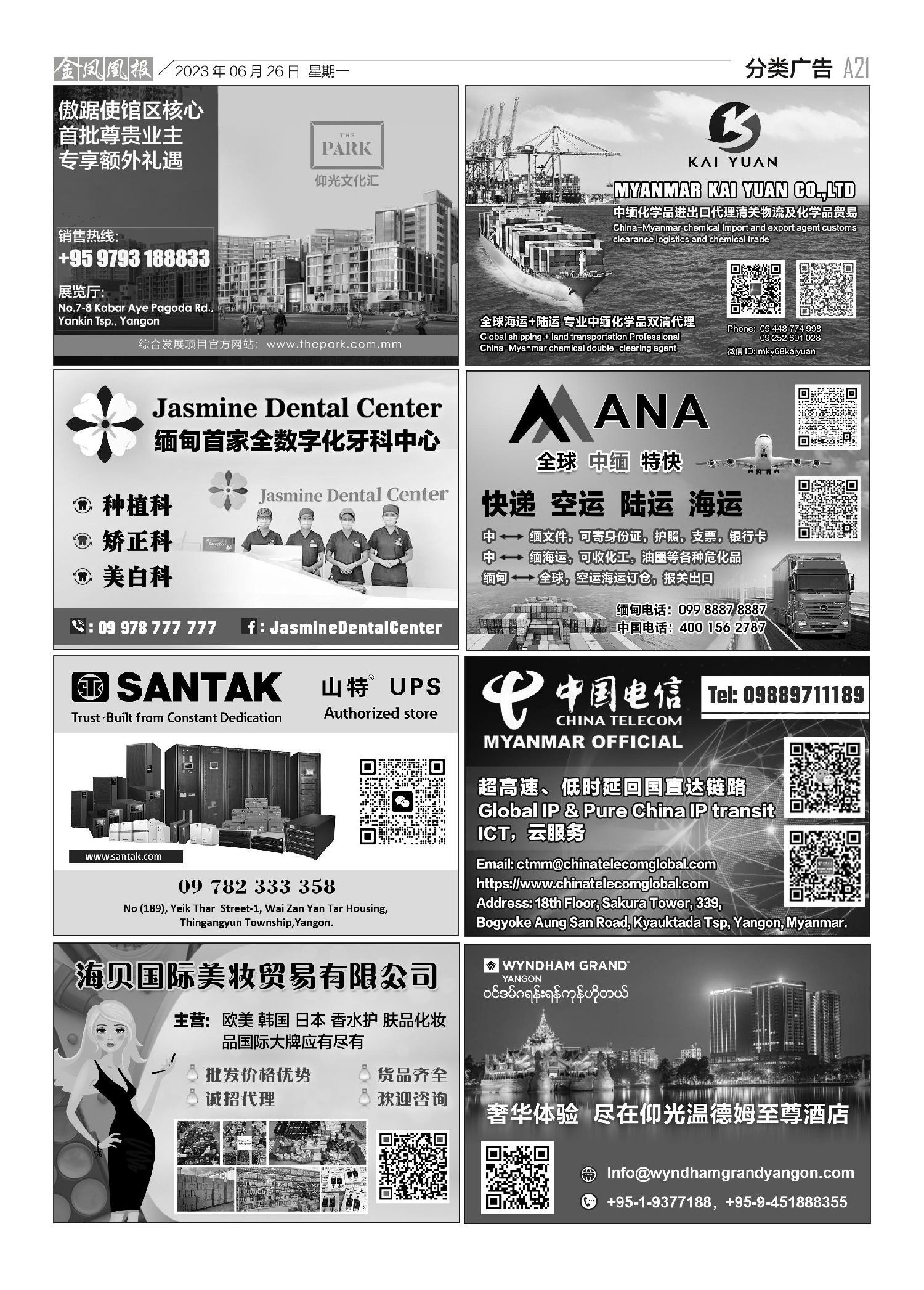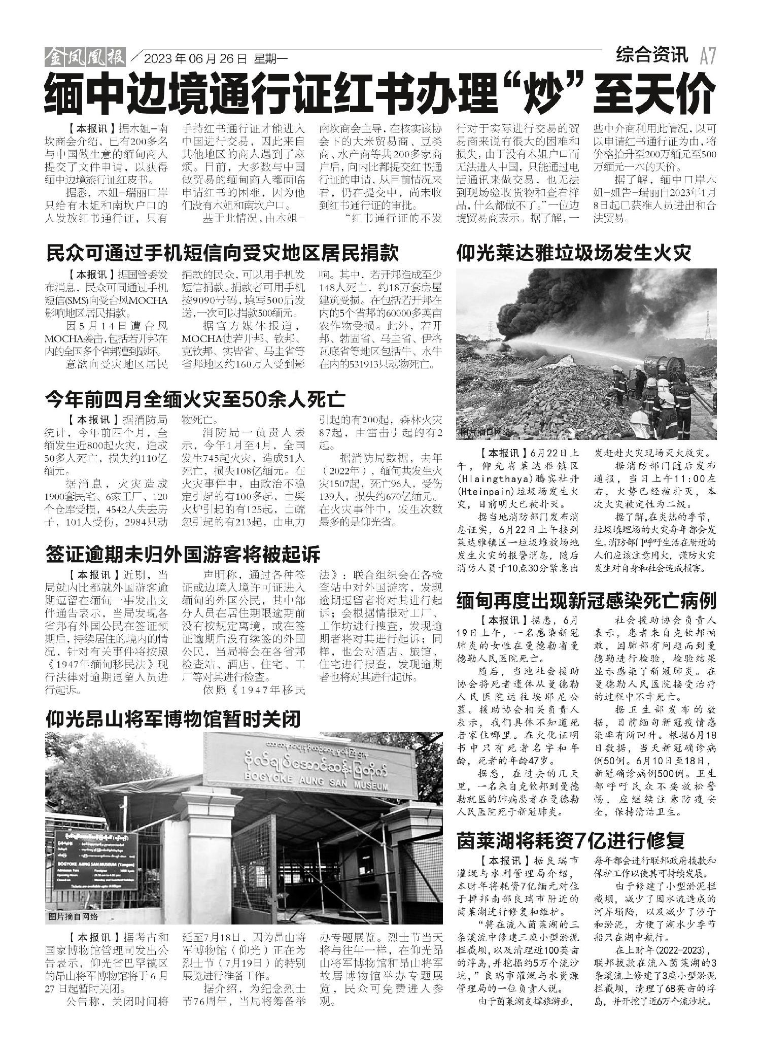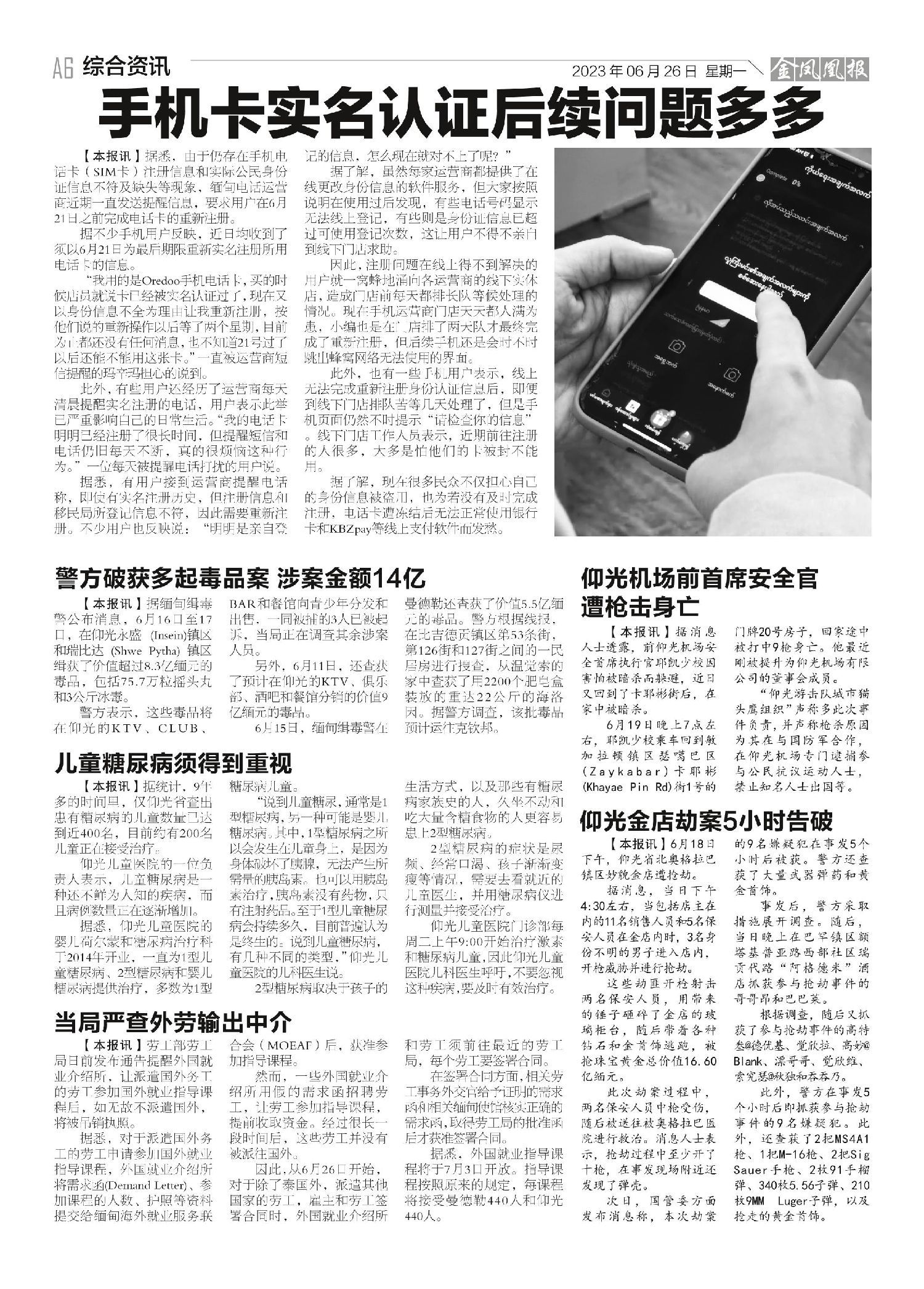 2023年6月26日出版的第625期《金凤凰报》电子报同时发送,为您带来关于缅甸最新最全的资讯。