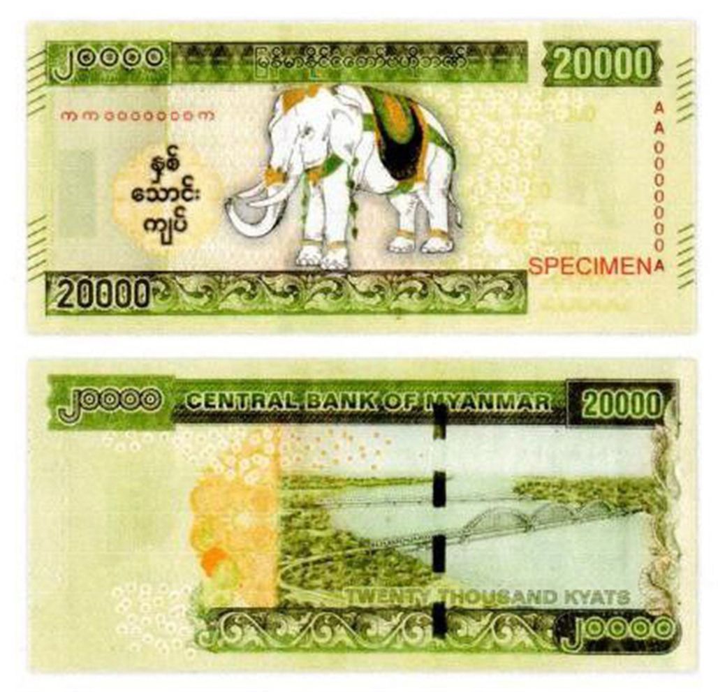 据悉,本次新发行的两万缅元纸币呈浅绿色,长15厘米、宽7厘米。纸币正面上方印有“缅甸中央银行”字样,中部印有极具缅甸艺术风格的瑞兽白象图案,白象右侧印有缅文版“两万缅元”字样。纸币正面的三个角分别印有缅文和英文的面值数字,钞票号码则以水平缅文、垂直英语的方式打印。此外,正面左侧还嵌有白象头部的水印图像,两侧边缘印有12条可供视障人士触摸感知的特征短线。