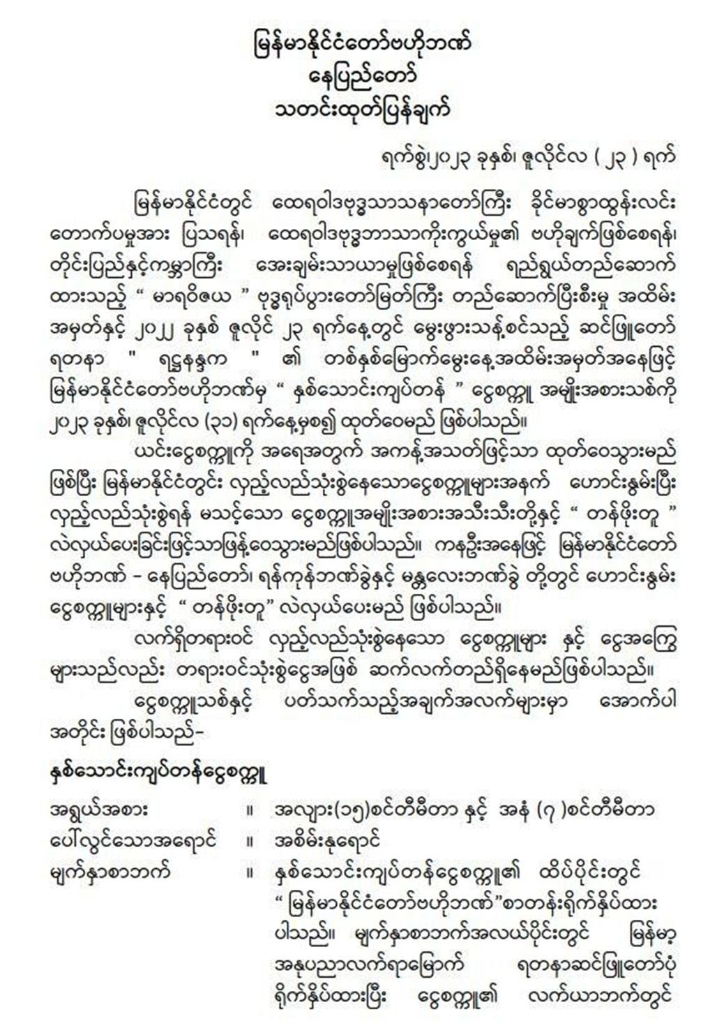 【缅甸金凤凰讯】缅甸中央银行发布公告称,为了纪念内比都“玛雅维萨亚”大佛建成,以及发现瑞兽白象“瑞亚南达卡”一周年,央行将于2023年7月31日发行面值“20000缅元”的纪念币。