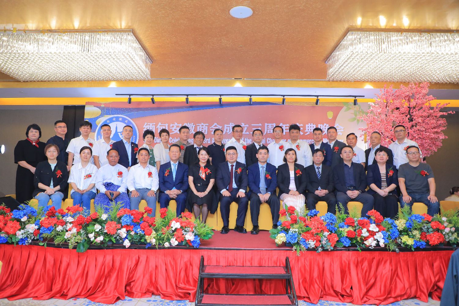 9月26日晚,缅甸安徽商会在仰光隆重举行成立三周年庆典暨双节同庆文艺晚会,中缅两国政府代表、各兄弟商会负责人、侨界领袖、商界精英及会员代表200余人齐聚一堂,共庆商会华诞,共话中缅合作新机遇。