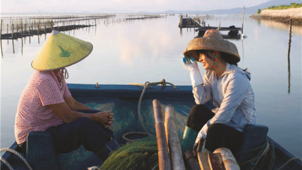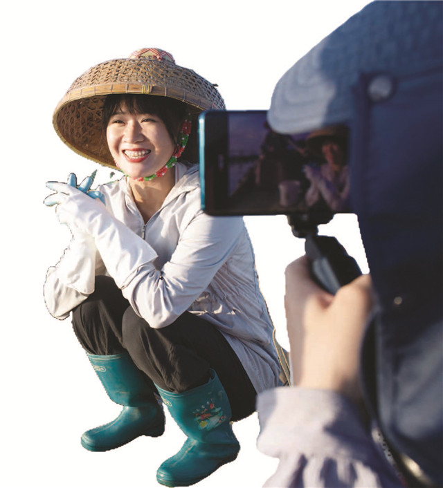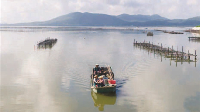 “阿渔妹”和父母出海捕鱼时,视频团队伙伴在一旁录制视频。