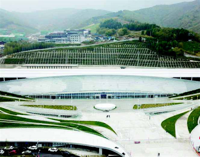 北京冬奥会和冬残奥会大多数奖牌将在位于太子城冰雪小镇的张家口颁奖广场颁发。目前,张家口颁奖广场所有地面硬化已经完成,颁奖广场主体舞台等临建设施已经开始施工。图为航拍的太子城冰雪小镇。