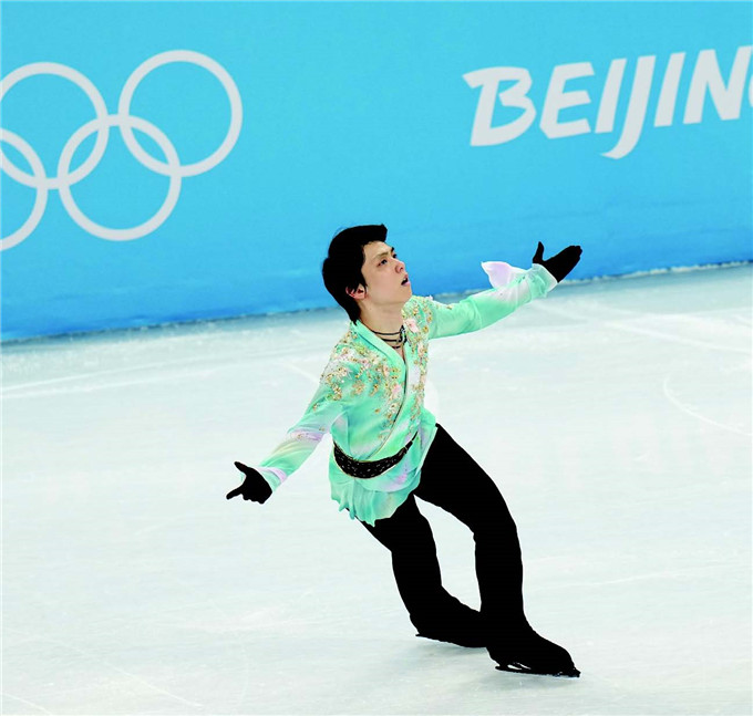 2 月10 日,北京2022 年冬奥会花样滑冰男子单人滑自由滑比赛在首都体育馆举行,日本选手羽生结弦最终获得第四名。图为羽生结弦在比赛中。
