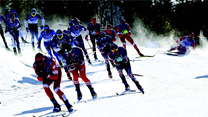 2 月6 日,北京2022 年冬奥会越野滑雪男子双追逐(15 公里传统技术+15 公里自由技术)比赛在国家越野滑雪中心举行。