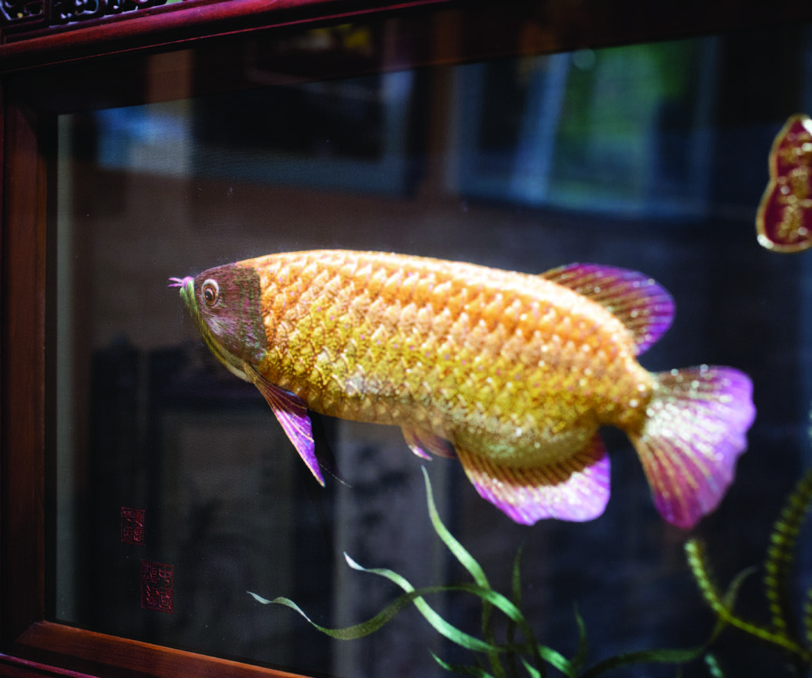 康惠芳潮绣工作室展示的双面潮绣作品《金龙鱼》。