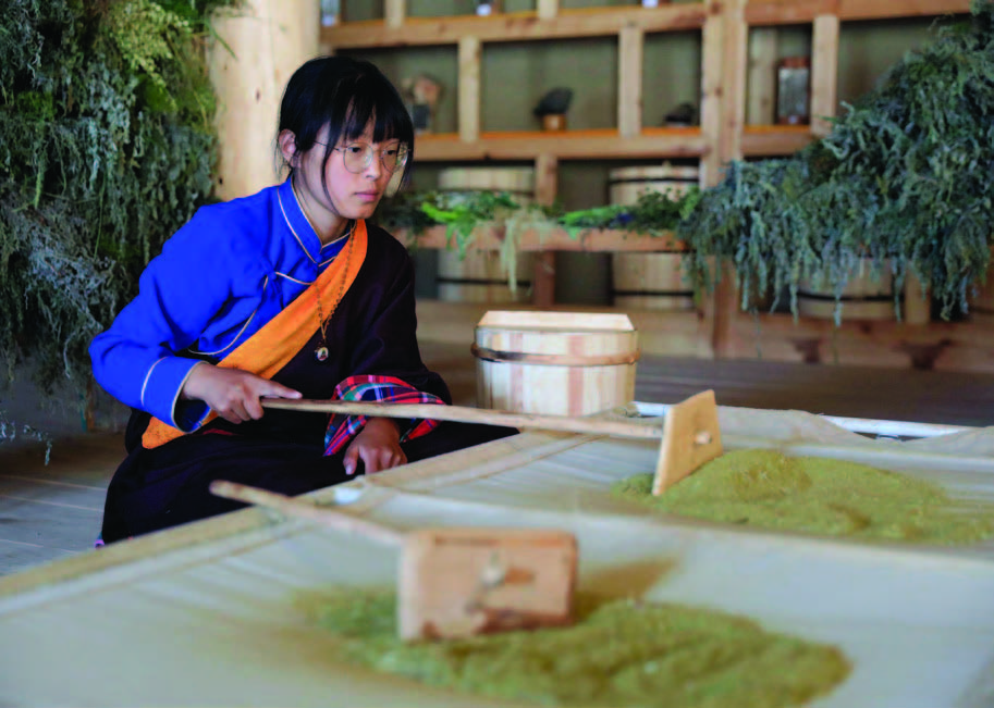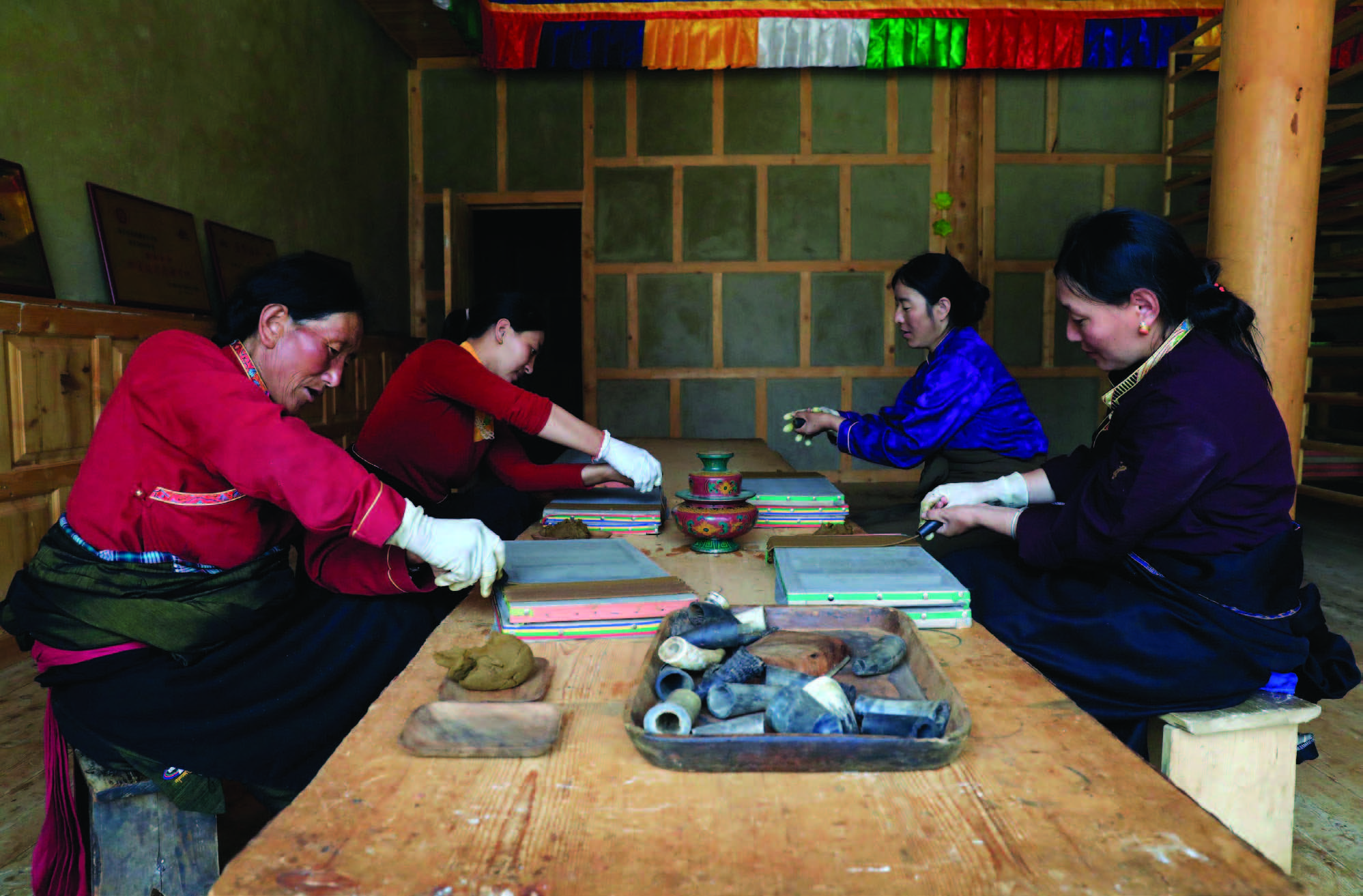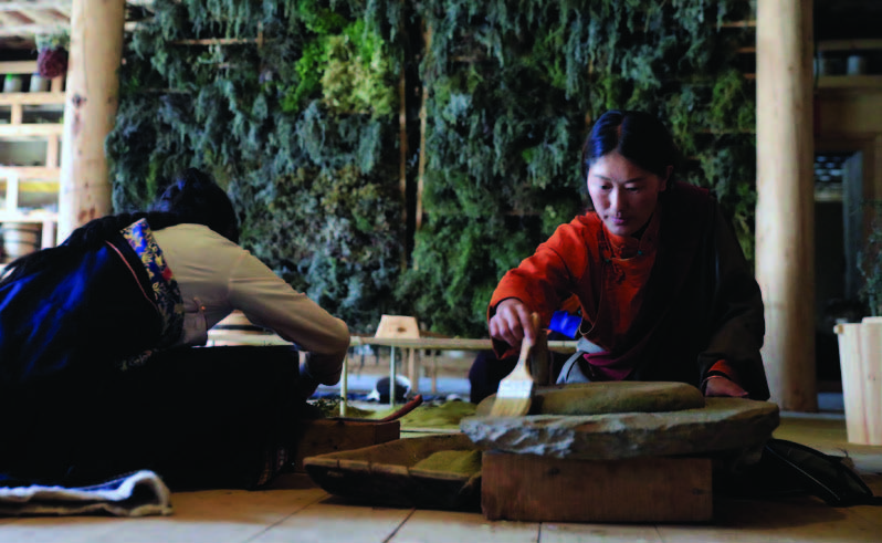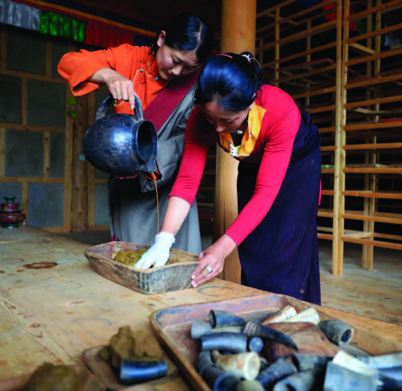 图为8月12日,传习所学员用传统工艺制作藏香。