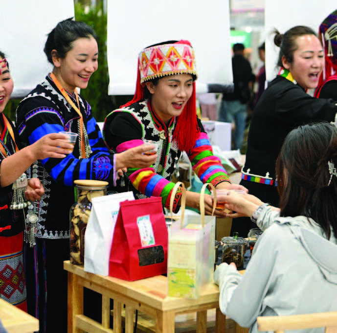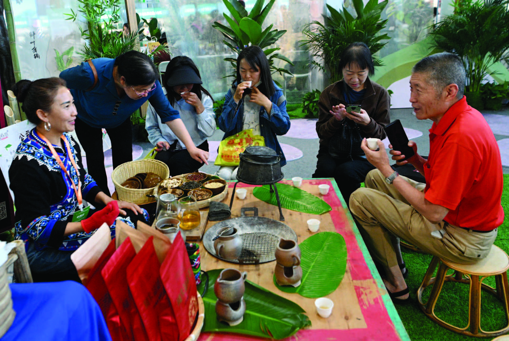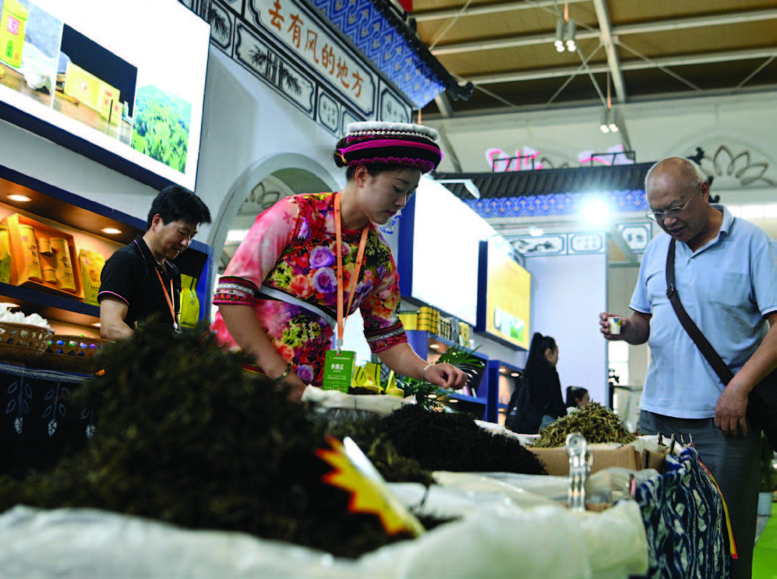 近日,以“绿色云茶·天下普洱”为主题的第十六届中国云南普洱茶国际博览交易会在昆明滇池国际会展中心开幕。本届茶博会展览面积3 万平方米,设置品牌企业馆、电商直播区和乡村振兴专区等特色展区,共有600 余家企业参展,吸引众多参观者前来共品茶香茶韵。 本版图片来源均据中新社