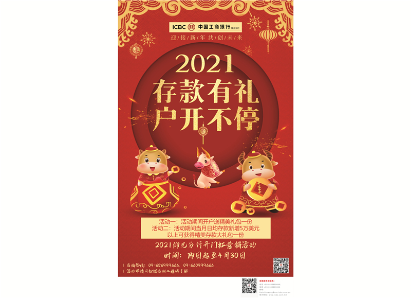 第二,中国工商银行仰光分行所有公司客户,凡在活动期间,某月度日均存款较上月日均存款新增5万美元以上,则将会获赠存款大礼包一份(如:环保袋,雨伞,茶叶,茶具等),且存款越多,送礼越多。存款范围包括活期存款、定期存款及通知存款。银行方面将在5月份第一周内,联系获奖客户,通过客户留存在银行的联系方式,通知客户得奖情况。