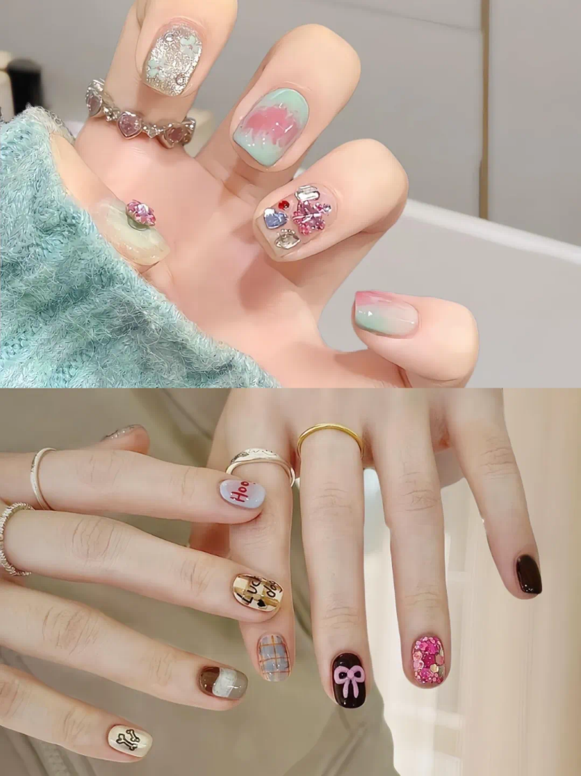 **创意美甲**:结合流行元素和个性化需求,如3D立体装饰、手绘图案等。