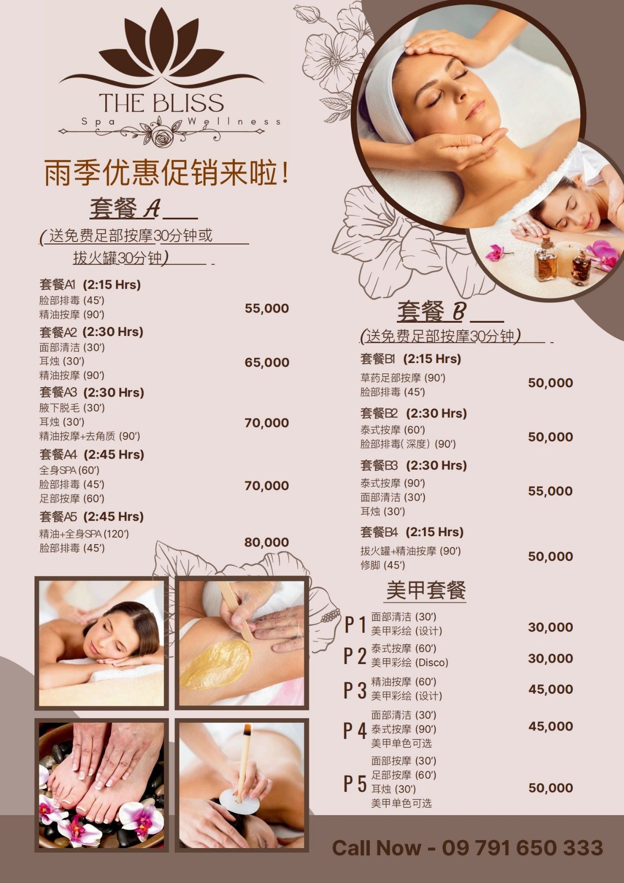 其中A2、A4、A5、B3和P5套餐一直深受广大消费者喜爱!小伙伴们可以根据自身需求和喜好来哈!欢迎电话垂询与预约:09791650333(同Viber)
