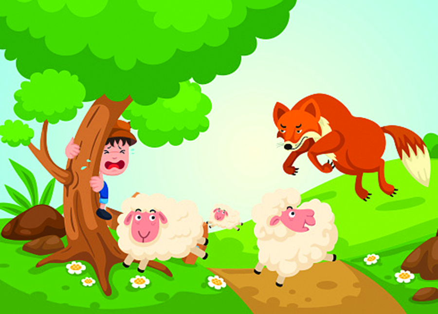 于是他就一边向村边跑,一边拼命地大喊:“狼来了,狼来了。救命啊!狼在吃我的羊!”村民们听到喊声,便放下手中的农活,拿着棍棒和斧头赶过去打狼。可是他们并没有发现狼,于是悻悻地回去了,只剩下放羊的孩子看着他们气喘吁吁的样子开怀大笑。