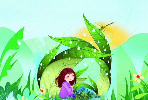 穿过云层,我看到天空之下有一个繁华的世界,我来到了森林,那里的动植物都很欢迎我的到来。突然,我落到大树的怀抱里,我在树叶上舞蹈,旋转跳跃,为大树洗净尘土,给它换上更加青翠的外衣。更多雨滴落下,敲打在树叶上,为森林献上一曲交响乐。在树叶上短暂逗留,我又落到了花瓣上,瞬间,一股沁人心脾的幽香扑面而来,花儿姑娘舞动她婀娜的身姿,为整个森林增添了别样的风情。我放空身体,让自己再好好感受这美妙的大自然。