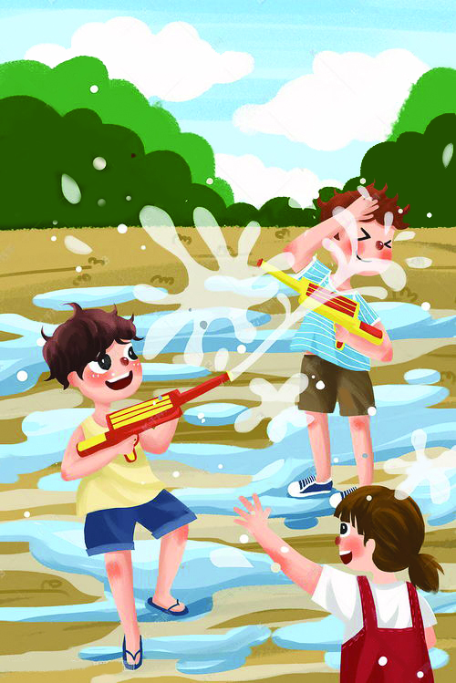 主要是因为今年景栋的疫情不太严重了。我们学校也开学了。不上网课了。也正是因为这样,今年我爸也不怎么阻挠我弟去泼水。但就是说我弟他真的很会玩,每天都很准时,早早地就拿着水枪和那个喷雪花,早早地就去他朋友家等着了。然后就一起泼水去了。但是每泼水完回来就看到脸又黑了一圈。不管怎么说泼水很好玩,但是也得涂一点防晒霜啦。还有就是要好好保护人身安全,毕竟是在马路旁边泼的嘛。