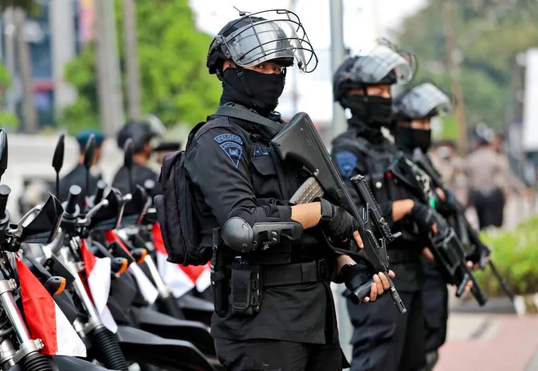 4月20日印尼雅加达东盟秘书处外,有荷枪实弹的警员站岗。