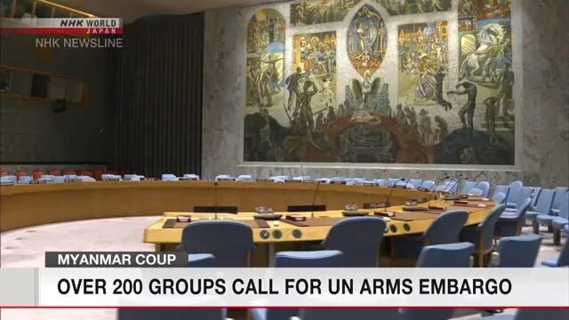 非政府组织声称,对缅甸实施全球武器禁运是安全理事会应对不断升级的军事武力作出的最基本反映,军方的接管引发了国际谴责和大规模抗议。