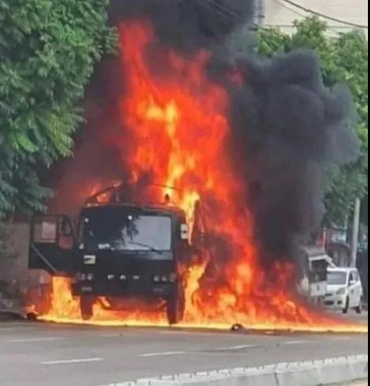 据缅甸军方发布消息称,事发时有人向军车投掷炸弹,导致军车起火。之后此人驾出租车逃离,大约5分钟后该出租车中发生爆炸,车内1人身亡。