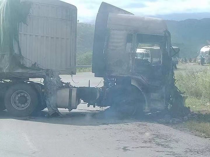 另外,在6月19日,在木姐-贵凯公路上有一辆卡车被烧毁。公路上的司机表示,有3辆汽车横停在公路上,一辆载有水泥的卡车头部被烧毁,造成交通堵塞,只有小汽车通行。他提醒通往该公路的汽车,在通行之前要打听路况,载有货物的卡车不要用油布遮盖汽车,这样相对会安全一些。