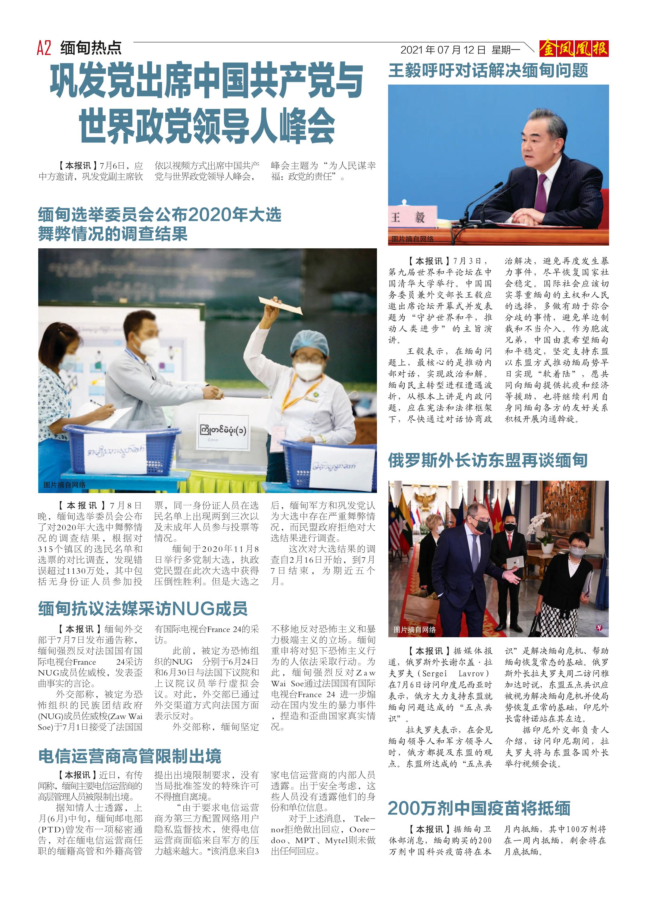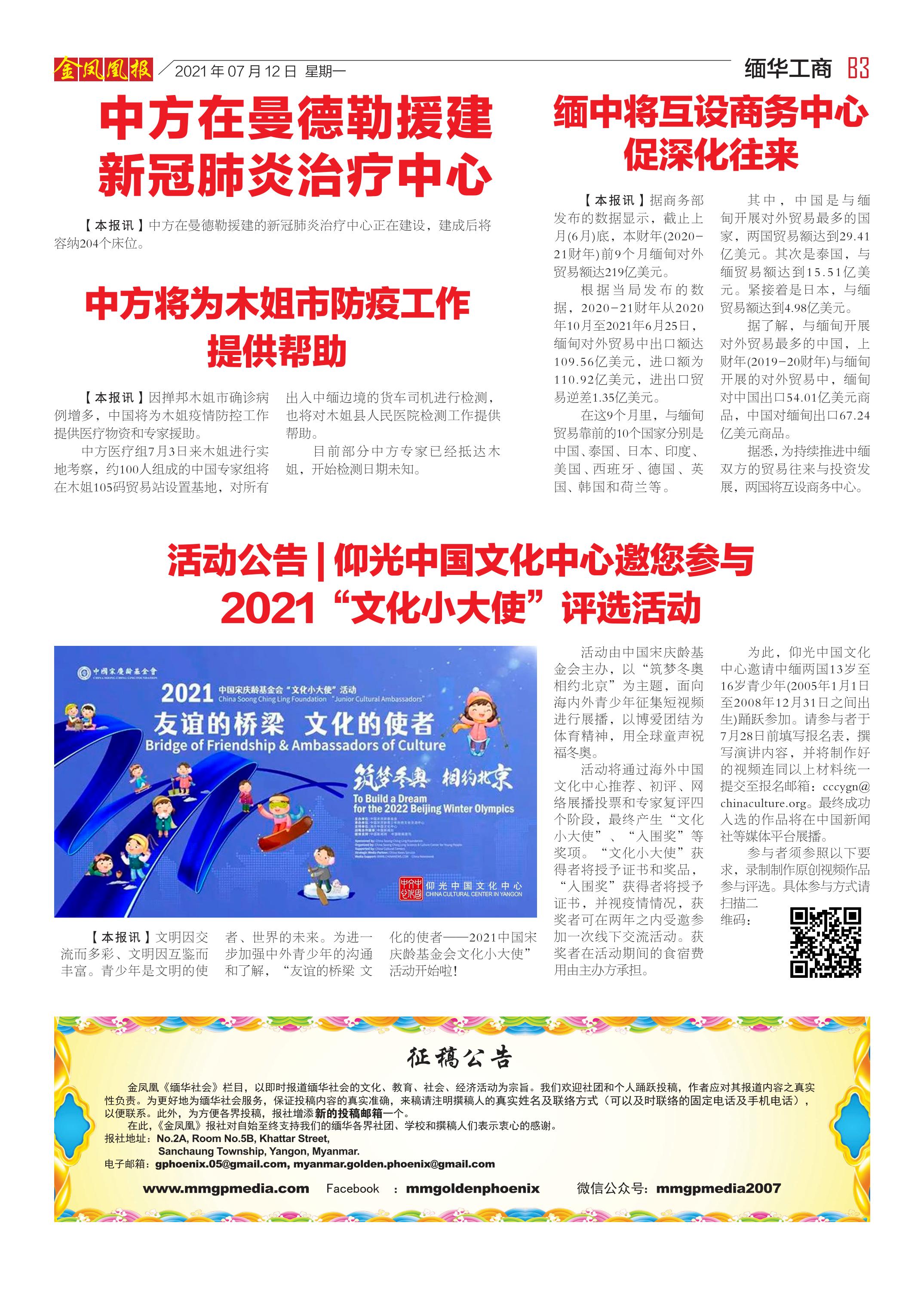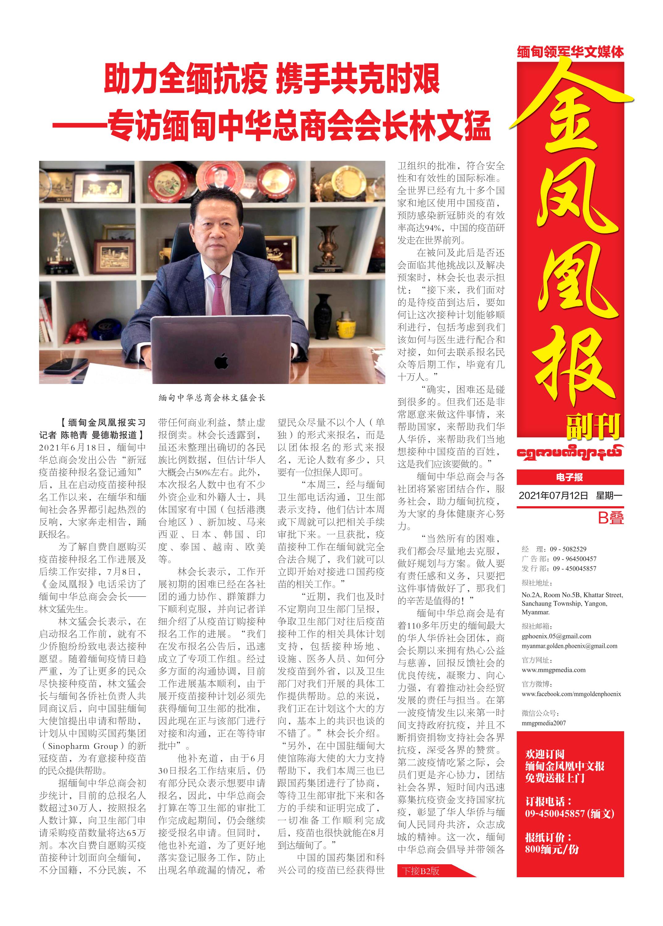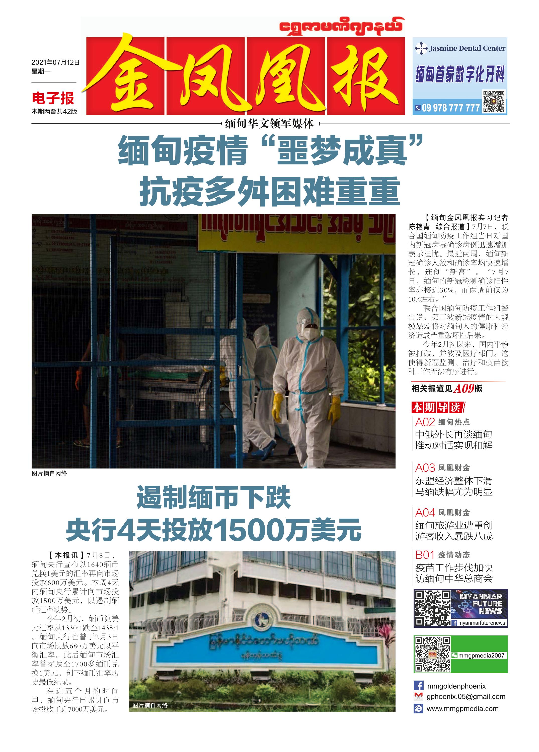 缅甸《金凤凰》中文报 电子报 (2021年07月12日)(附下载链接)