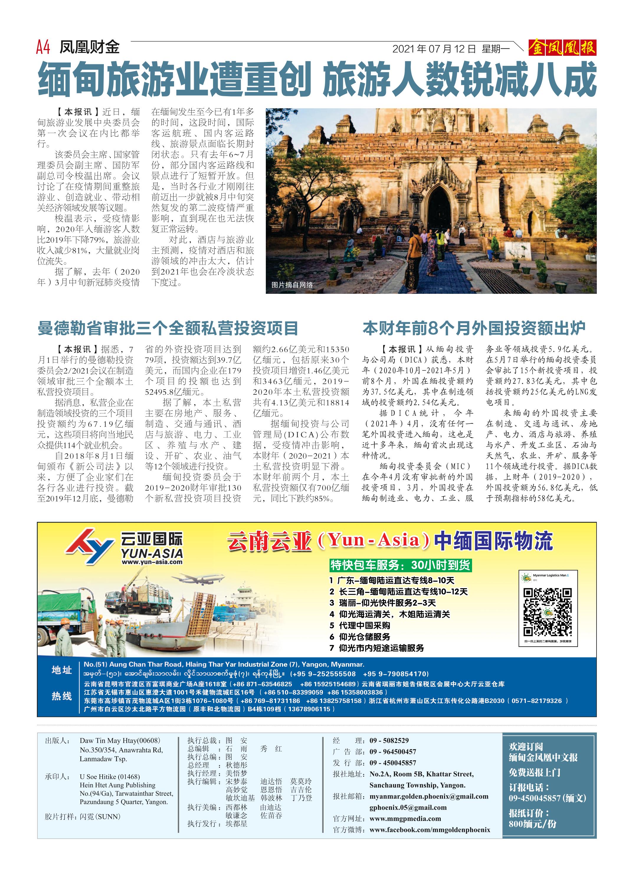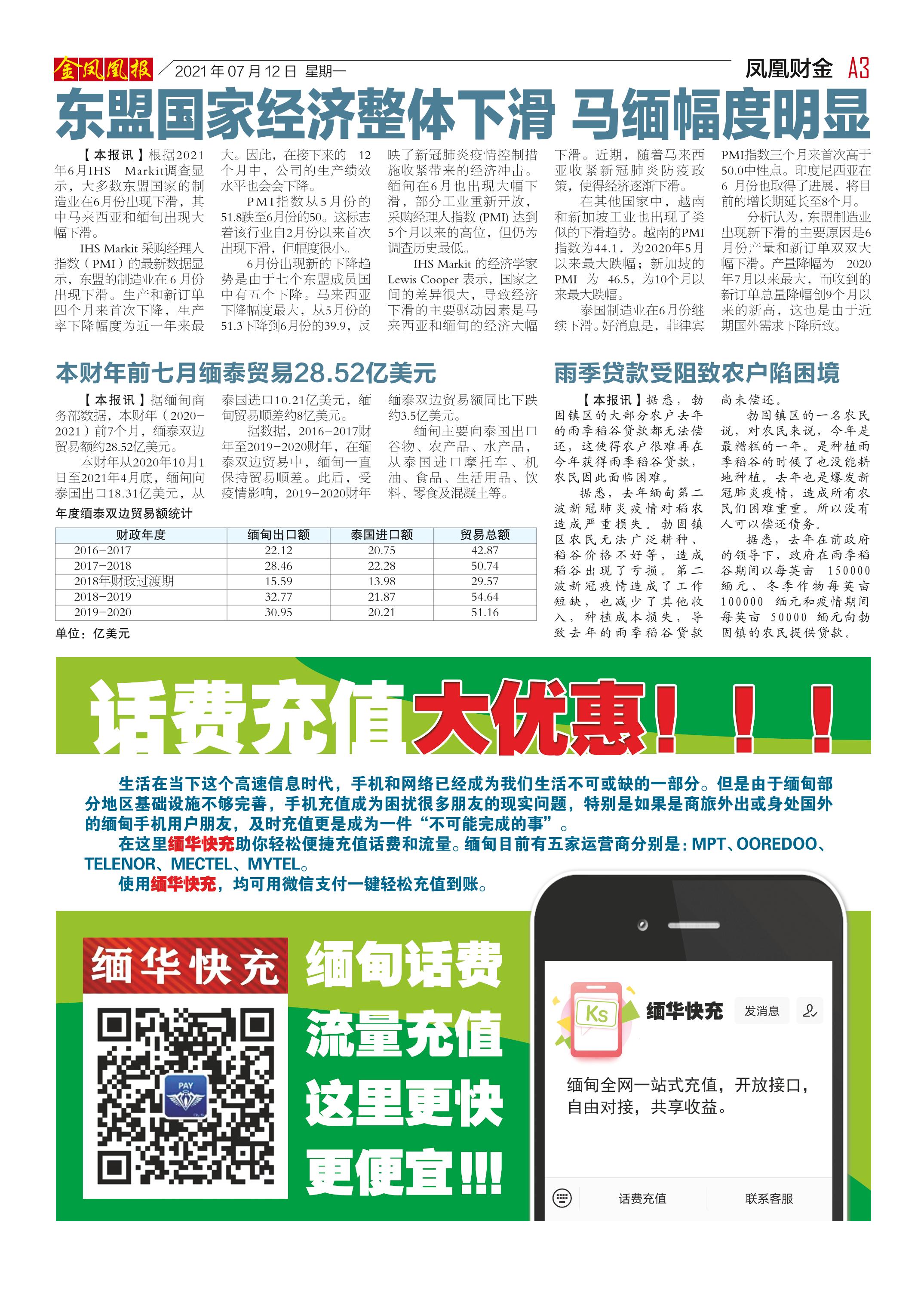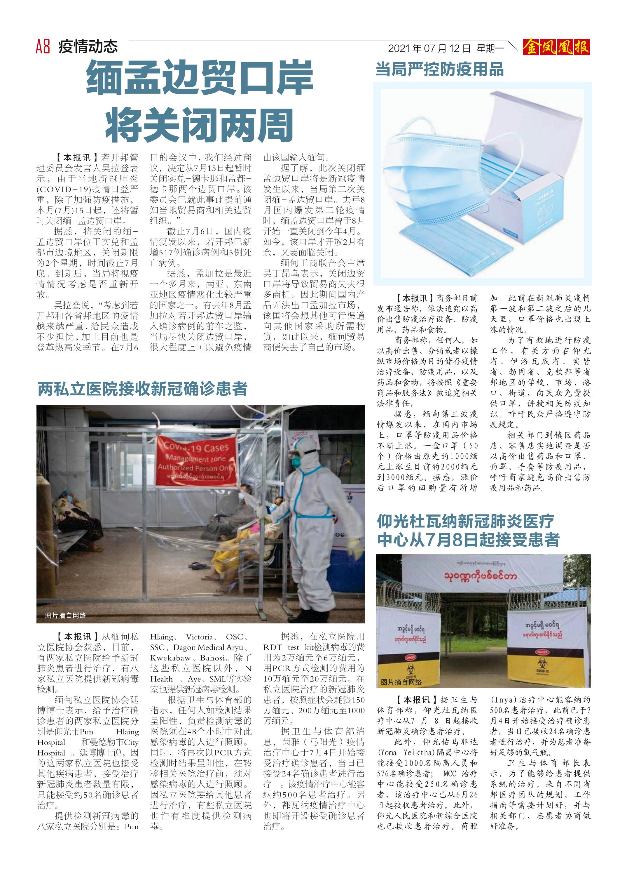 缅甸《金凤凰》中文报 电子报 (2021年07月12日)(附下载链接)