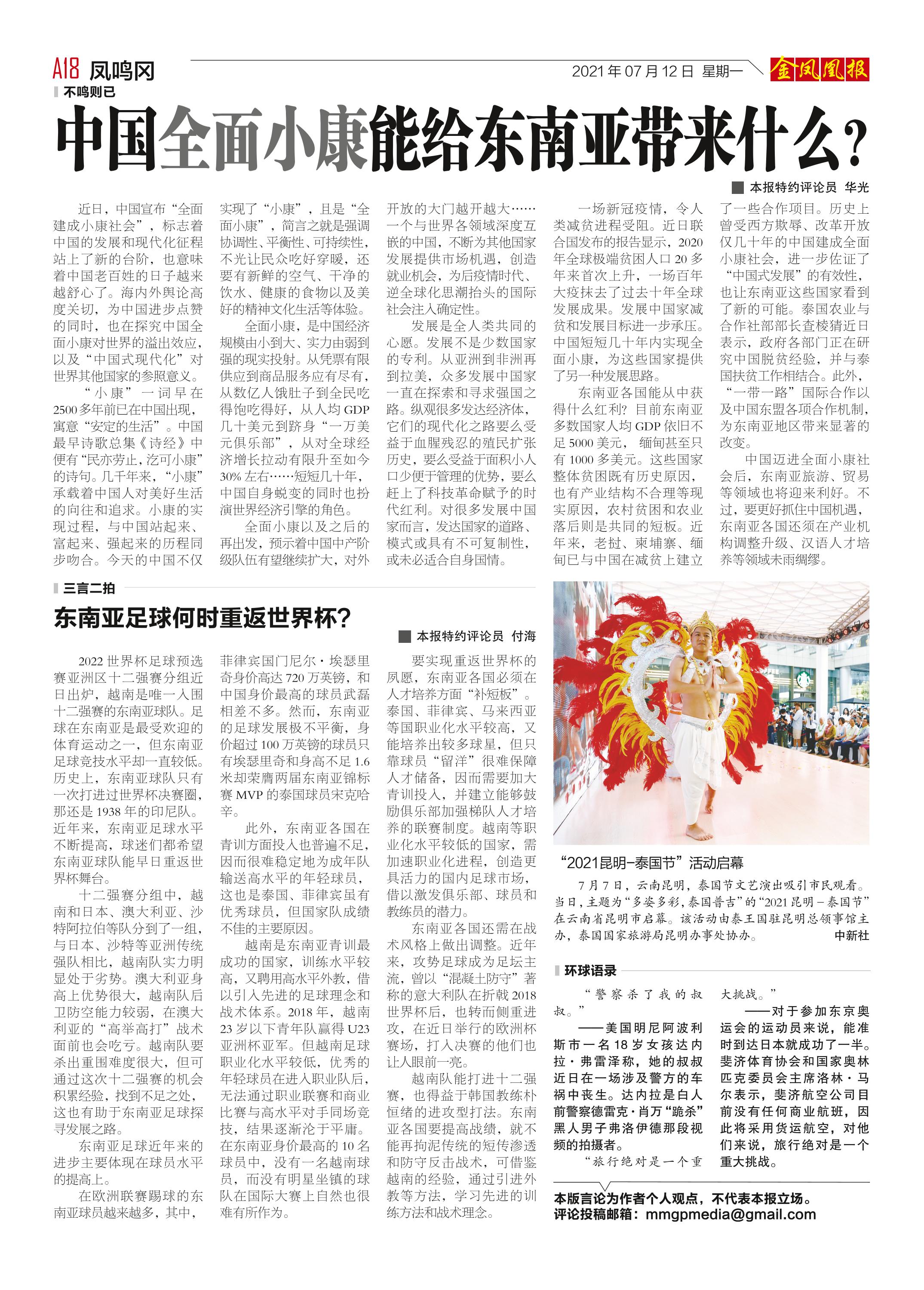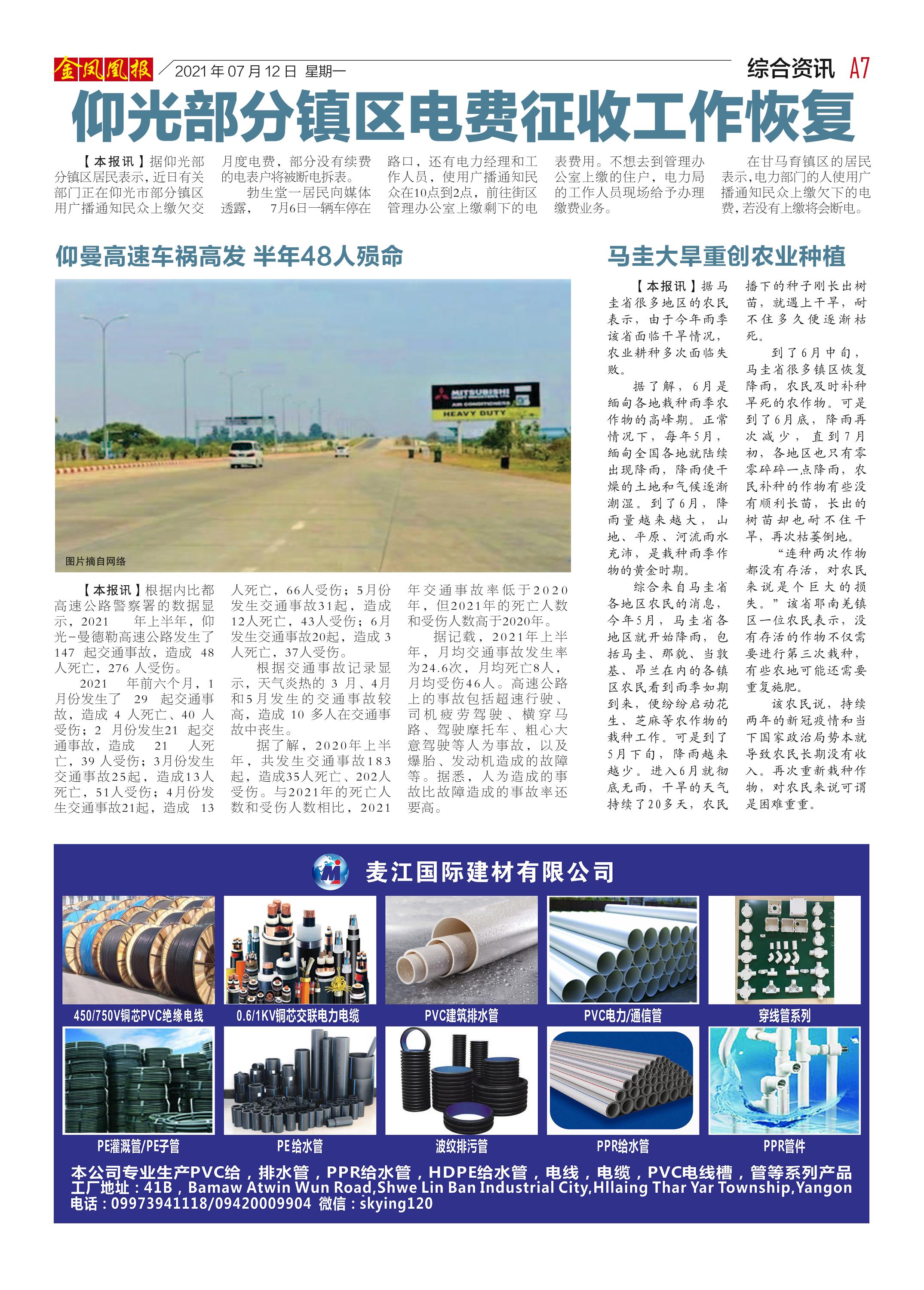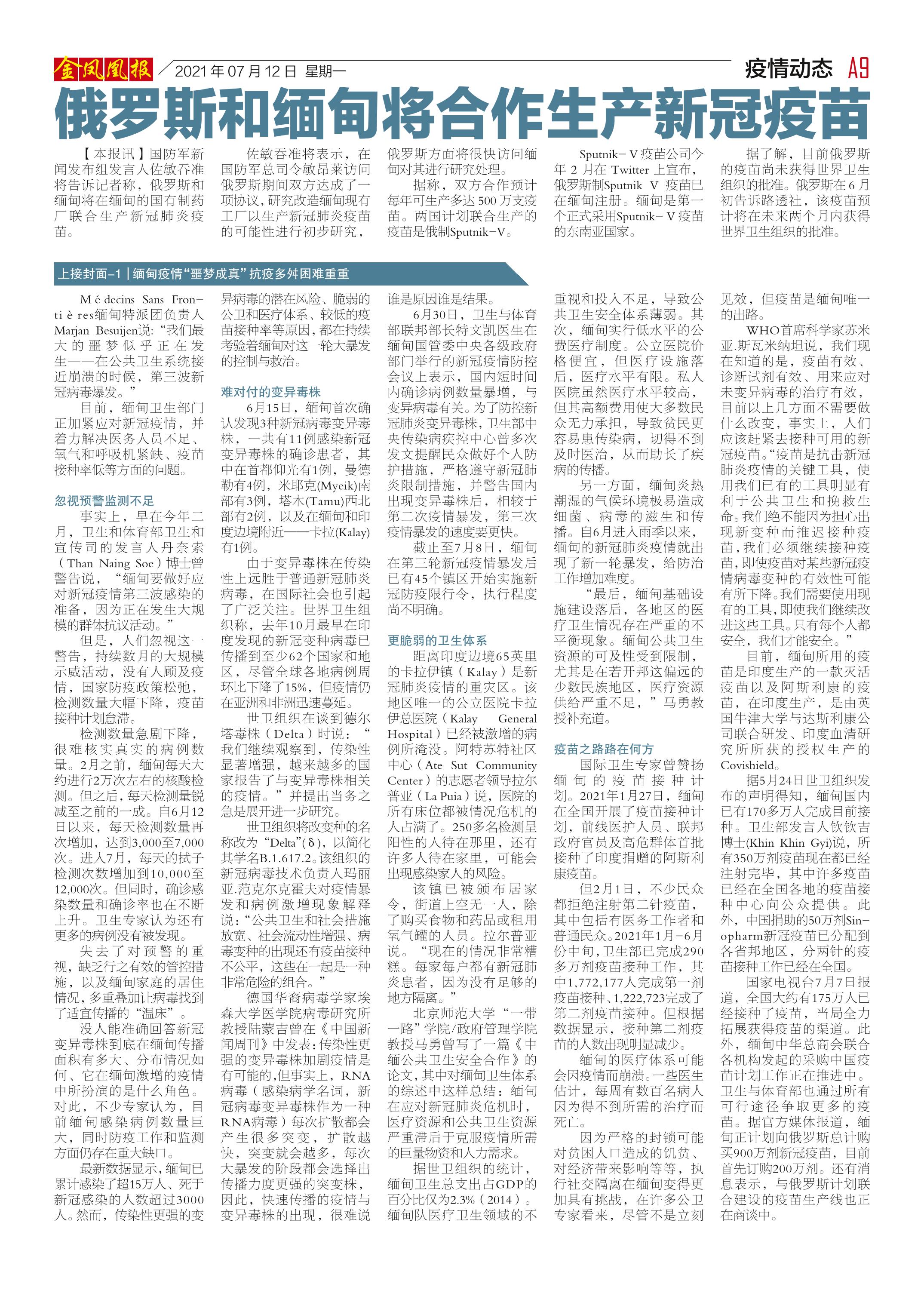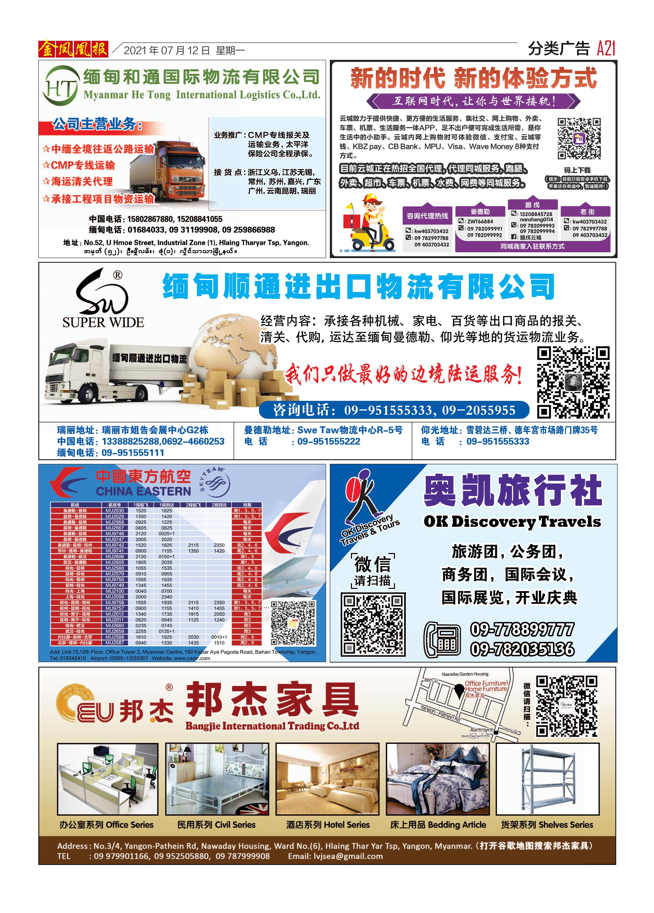 缅甸《金凤凰》中文报 电子报 (2021年07月12日)(附下载链接)