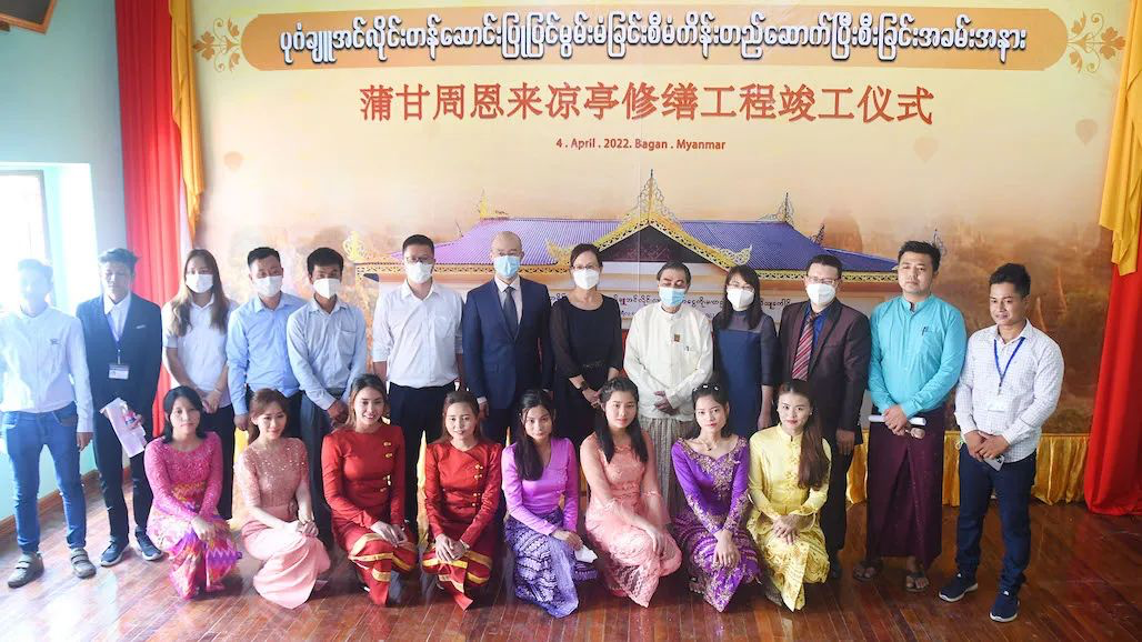 据了解,为使凉亭更好地发挥效用,中国驻缅甸使领馆与缅甸宗教文化部、曼德勒省政府、蒲甘考古局、瑞喜宫佛塔管理委员会等部门商定,对凉亭作进一步修缮后,重新向公众开放。修缮工程于今年(2022年)1月正式启动,中缅双方通力合作,施工方Vision Hitech公司加快推进,克服疫情等诸多困难,历经3个月不懈努力圆满完工。