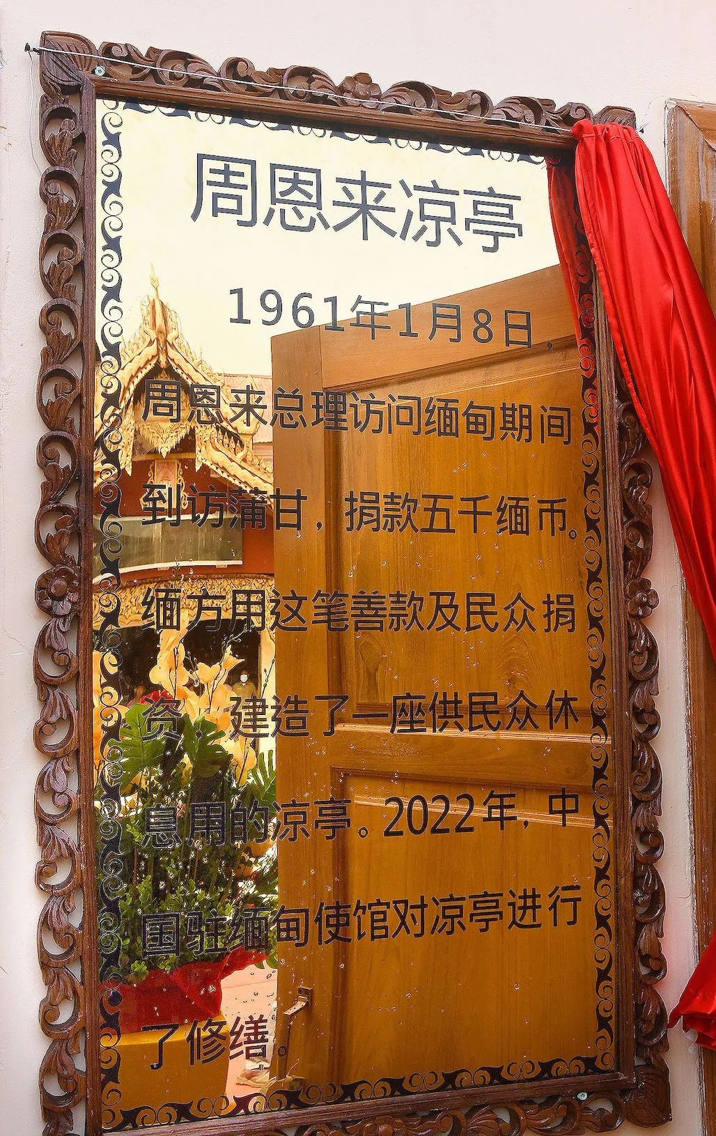 【缅甸金凤凰讯】61年前,曾9次访问缅甸的周恩来总理于1961年1月8日到访蒲甘,并捐赠善款五千缅元。这笔善款及民众捐资,被用于建造了这座供民众休息用的凉亭,成为中缅友好的象征。