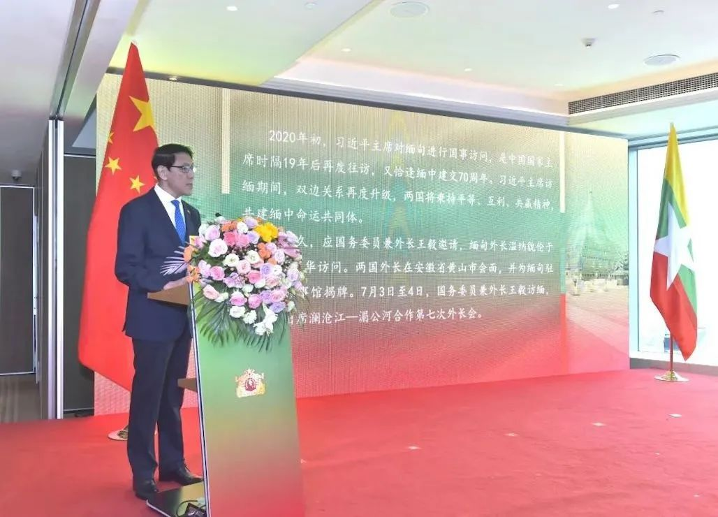 苗丹佩大使在致辞中表示,缅甸驻重庆总领事馆的开馆是一件大事、喜事,在缅中双方关系历史上具有里程碑意义。他说,自缅中建交72年以来,世代胞波情谊持续深化,双边关系取得长足发展,各领域合作硕果累累。在彼此的相互理解和睦邻友好的基础上,缅中友好合作将不断发展、再创辉煌。他指出,重庆地理位置优越,与缅甸合作基础良好、合作范围广泛、合作势头强劲,缅甸驻重庆总领事馆的设立定将促进缅甸与重庆、缅甸与中国的友好交流合作再上新台阶。