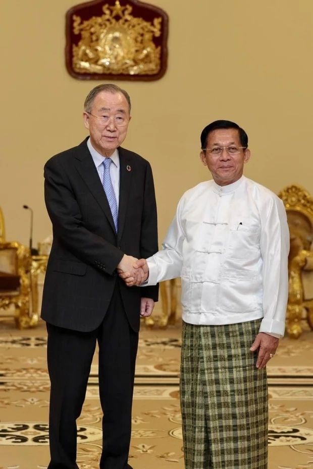据悉,应国管委邀请,The Elders副主席、前联合国秘书长潘基文率领的代表团4月23日抵达内比都。