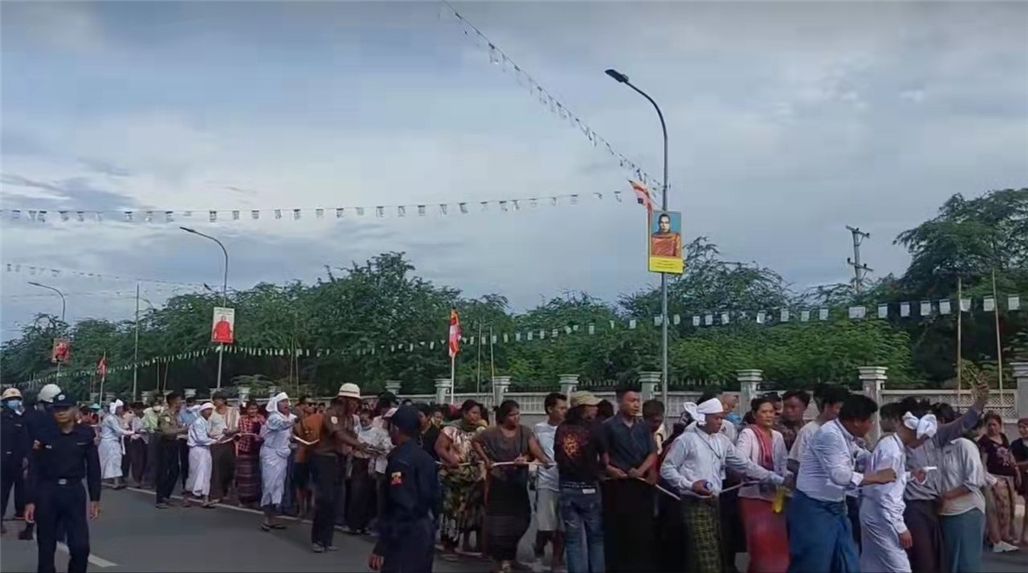 【缅甸金凤凰讯】今天(6月6日),缅甸国家僧侣协会主席(缅甸僧王)、国家中央僧侣服务委员会主席巴莫大师(Bamaw Sayadaw Gyi;ဗန်းမော်ဆရာတော်ကြီး)国家级葬礼仪式在曼德勒举行。现场万人跪拜祈福为巴莫大师送行。