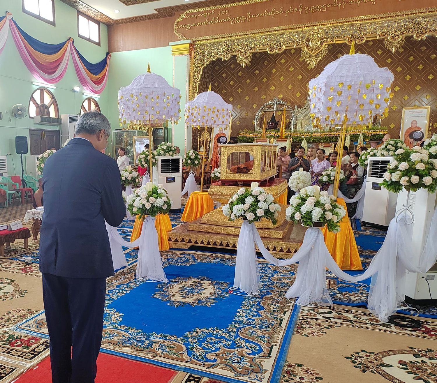 据介绍,国管委主席、国家总理敏昂莱大将、国管委成员、联邦部长、曼德勒省行政长官及相关负责人、中部军区司令、高僧、各宗教领导人、施主等参加了僧王国葬仪式。