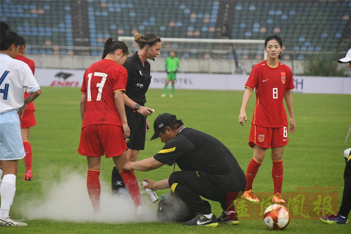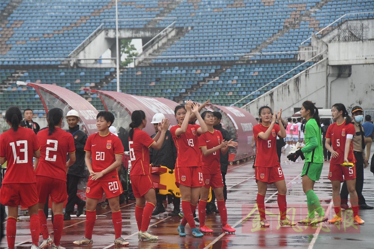 整场比赛大雨时断时续,给双方运动员带来不小的困难,但中国女足小将们迎难而上,风雨中绽放“铿锵玫瑰”,用精彩表现赢得了冒雨到现场观战数千观众的欢呼与喝彩。