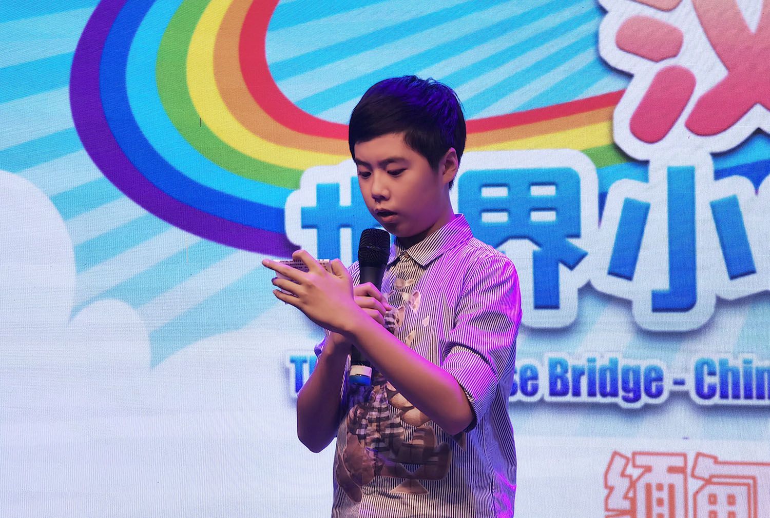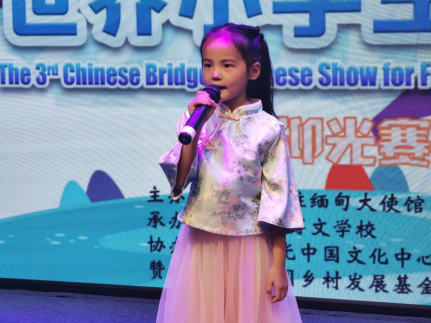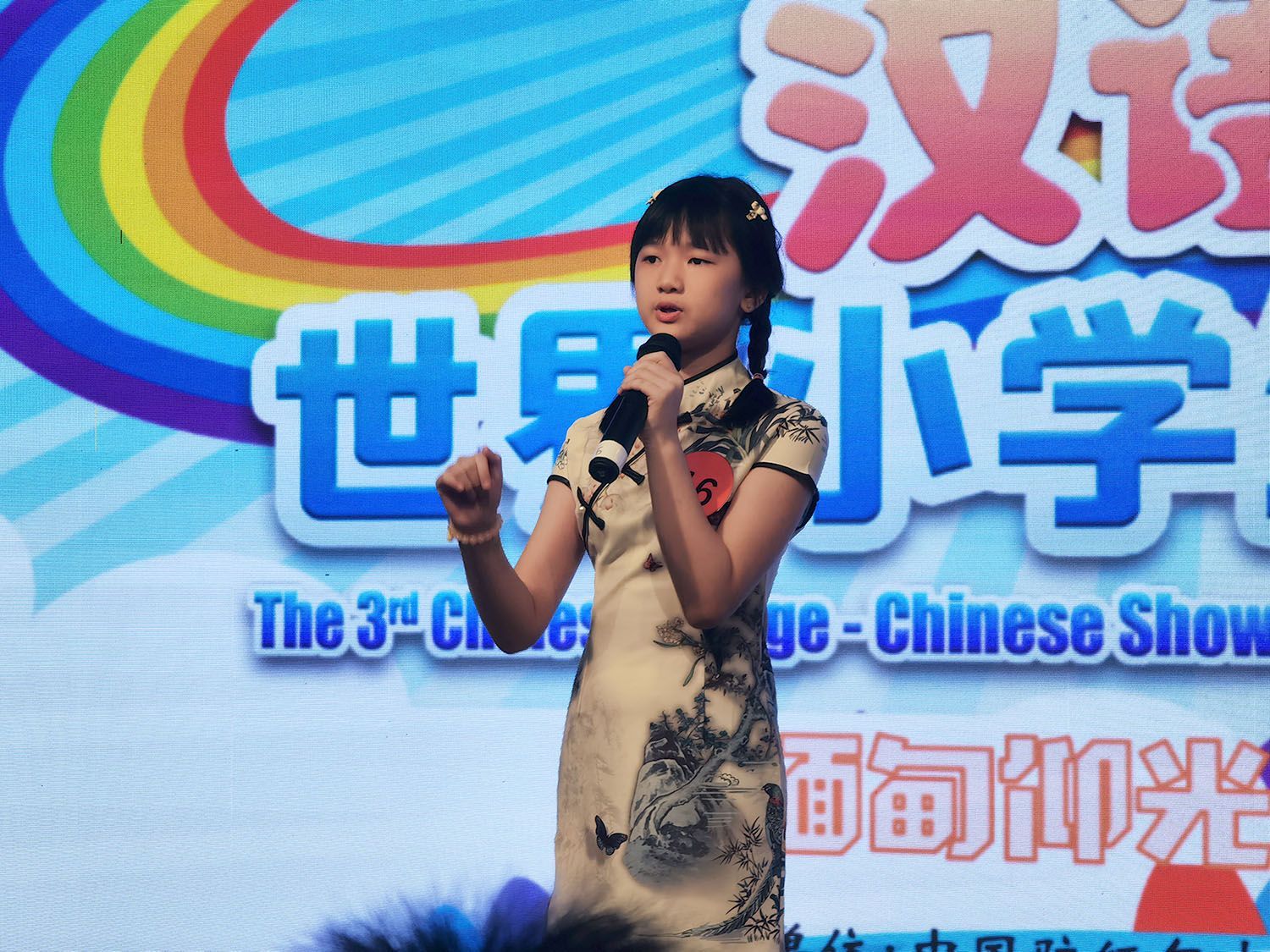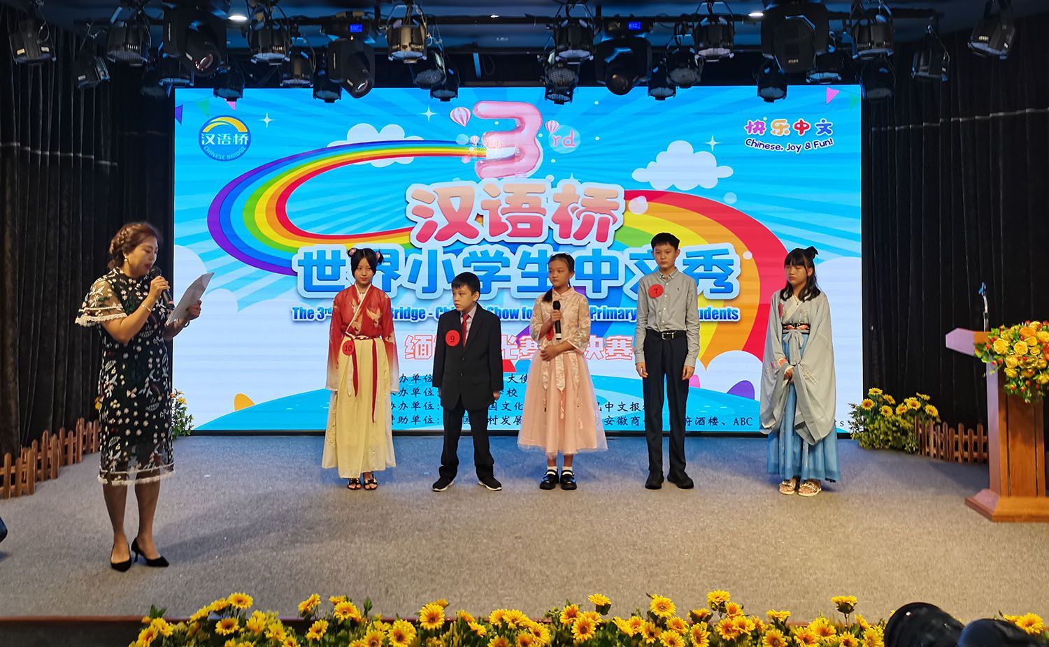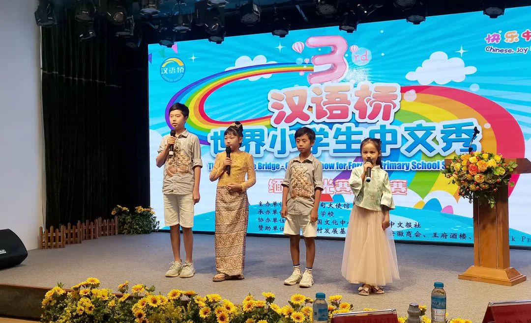 比赛活动安排严谨有序,环环相扣,参赛小选手热情激扬,奋力争先,评委老师们一丝不苟,认真评选。比赛过程中,选手们通过充满中国文化元素的唱歌、舞蹈、手语、剪纸、演讲等形式,展示了他们学习汉语和中国文化取得的进步与成果,赛出了自信与友谊,诠释了自己对中国文化的理解与喜爱,给现场评委和观众留下了深刻的印象。经过3个小时的角逐,本届“汉语桥”决赛迎来了最激动人心的时刻。
