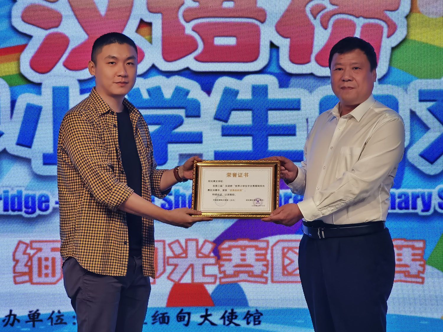 本次活动由中国驻缅甸大使馆主办,仰光博文学校承办,仰光中国文化中心、金凤凰中文报社协办。大赛由中国乡村发展基金会、缅甸安微商会、王府酒楼、ABC Milk Products等机构、企业共同赞助。
