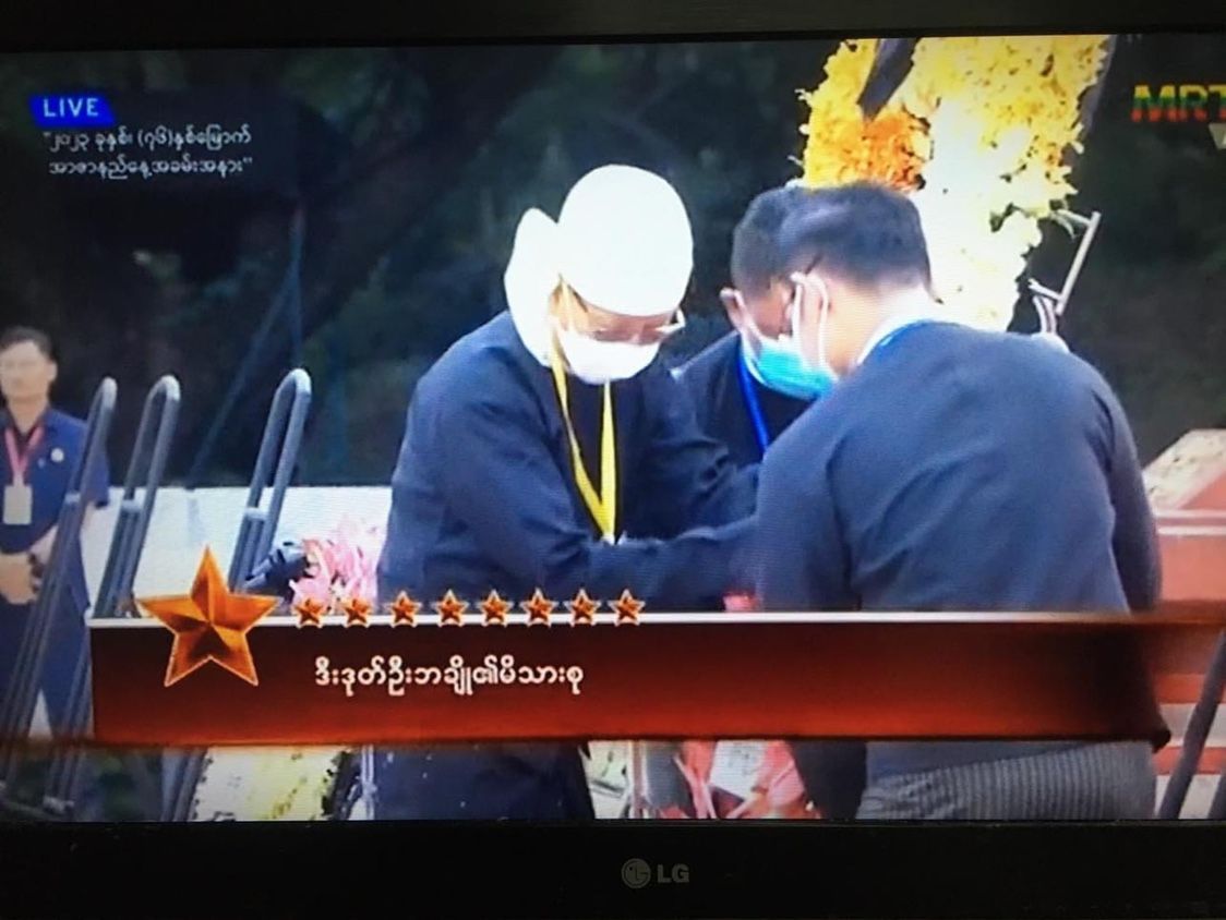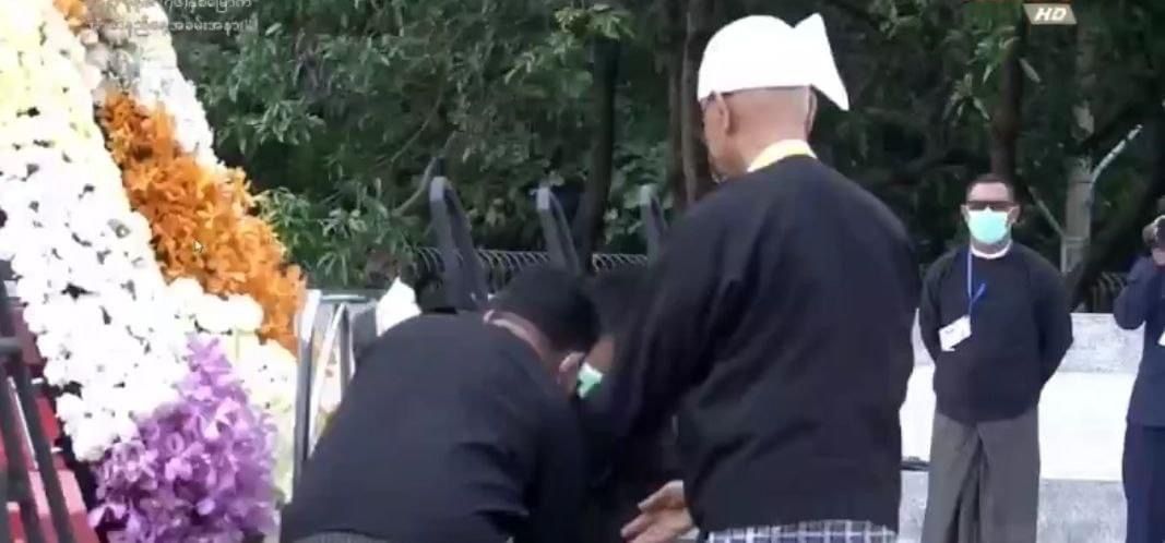 国管委副总理兼交通与通讯部部长丁昂山上将等国家领导人出席烈士节纪念仪式并向烈士献了花圈。