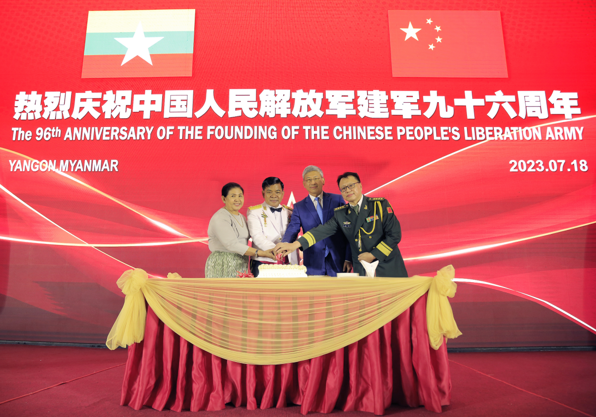 7月18日,中国驻缅甸使馆举行庆祝中国人民解放军建军96周年招待会。中国驻缅甸大使陈海、驻缅甸使馆国防武官王玮大校及缅甸国防军总参谋长貌貌埃上将、仰光省首席部长梭登等军政高层、驻缅武官团、华人华侨和中资企业代表等近400人出席。