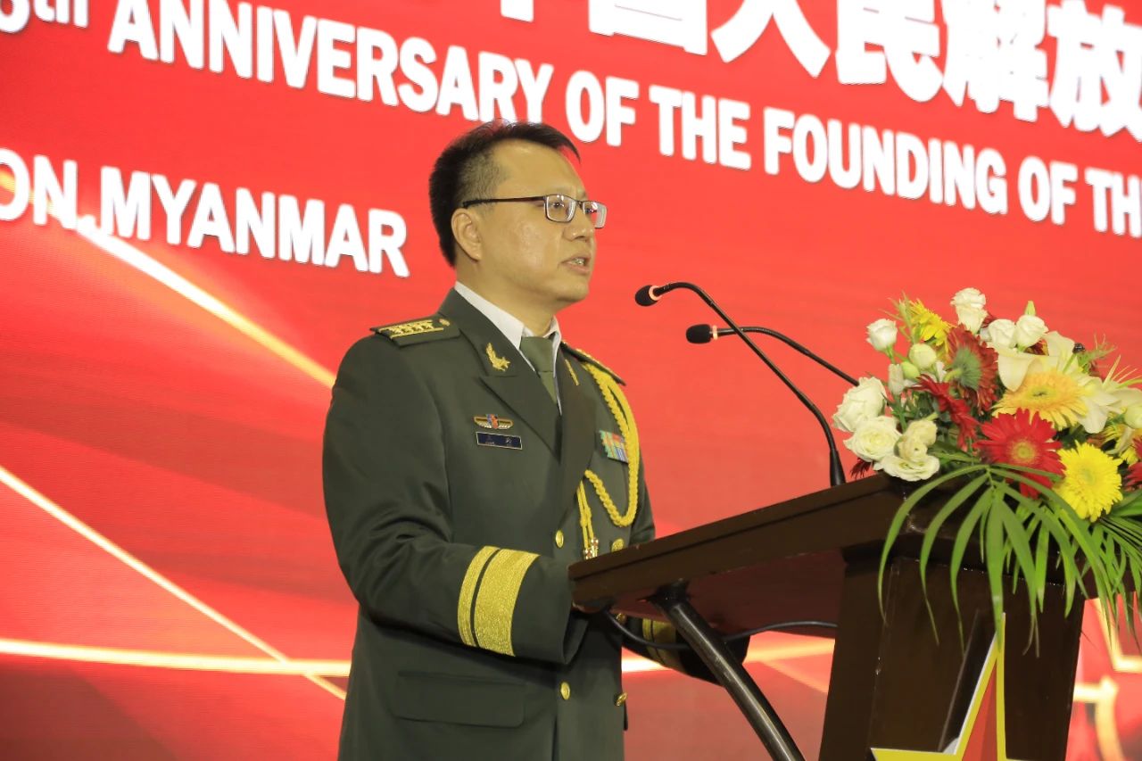 王玮武官在致辞中指出,在中国共产党坚强领导下,中国人民解放军已走过96年的辉煌征程。中国坚定走和平发展道路,奉行防御性国防政策。中国军队始终是世界和平的维护者和贡献者。今年是中缅建交73周年。“胞波感情重,江水溯源长”,中国对缅友好政策面向全体缅甸人民。我们将传承发扬中缅胞波情谊,致力于中缅命运共同体建设,继续为缅甸的和平发展提供力所能及的帮助,推动中缅友好合作取得更多成果,更好造福两国和两国人民。