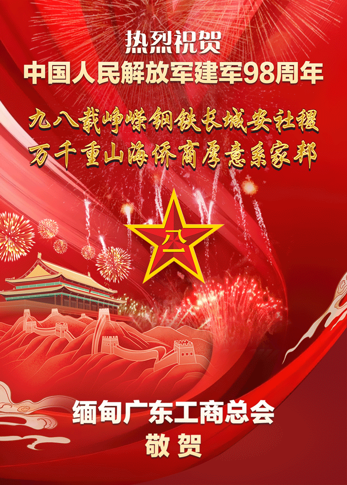 缅甸广东工商总会祝贺中国人民解放军建军98周年
