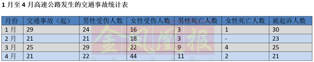 今年前四月仰曼高速交通事故统计出炉 伤亡人数超200