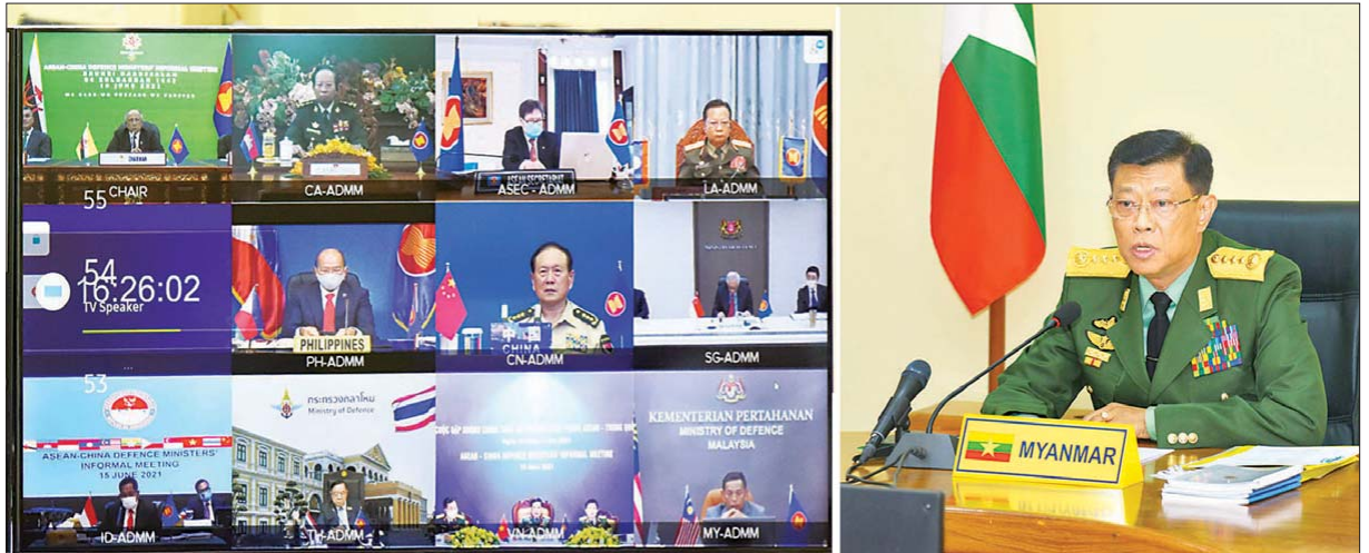 此外,6月16日,在国防部会议厅,妙吞乌上将和官员通过视频会议出席了第八届东盟防长扩大会视频会议。