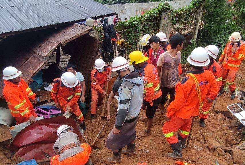 【缅甸金凤凰报讯】缅甸消防局消息,8月13日早晨0620时,曼德勒省抹谷镇区连夜降雨出现山体滑坡,致山下居民一家7口人被埋。