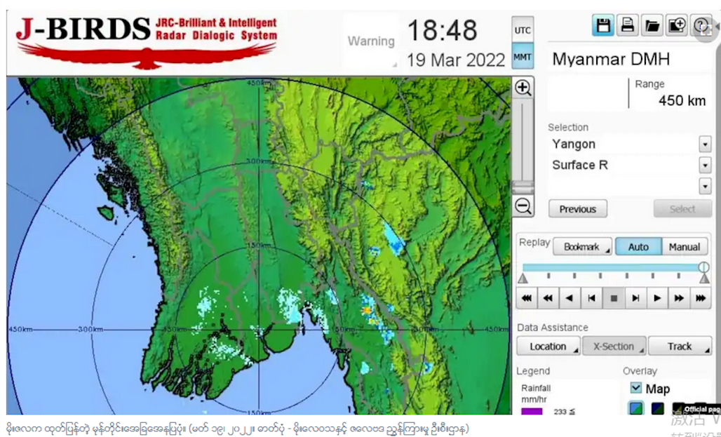 3月20日下午4点,伊洛瓦底省马乌宾市强风暴雨持续了1小时,由于是在烈日下突然袭来的强风暴雨,居民们对此表示担心。另一沿海地区德林达伊省丹荖市(မြိတ်မြို့)在当日傍晚也有强风暴雨,到7点左右天气又恢复稳定。