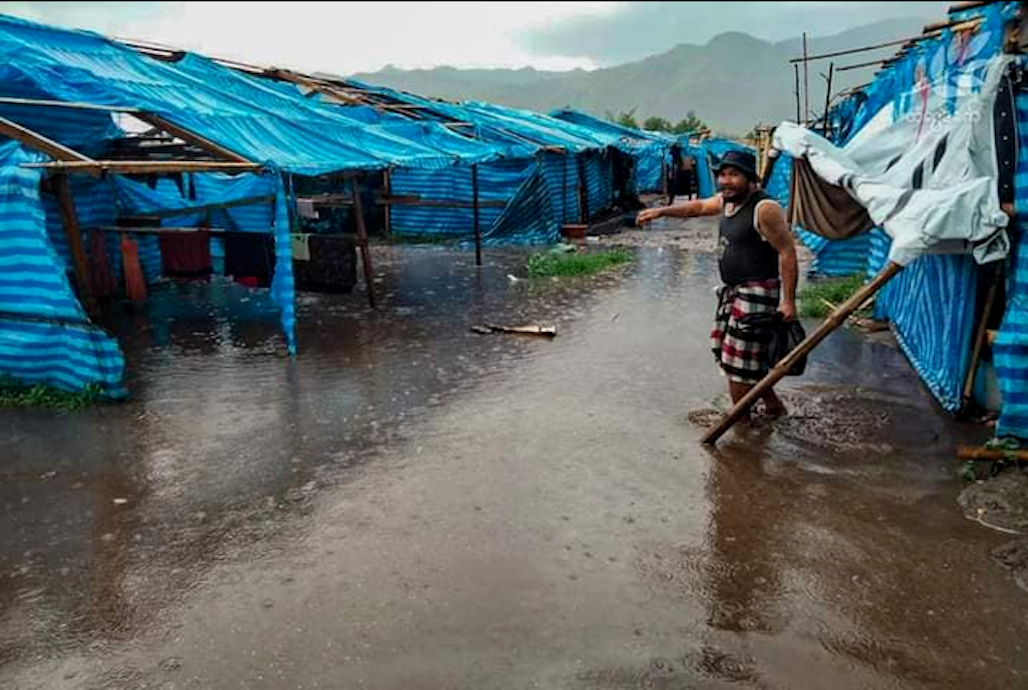 20日,因暴雨袭击,位于缅泰边境妙瓦底市南部的勒给果地区(လေးကေ့ကော်)的难民营受损,由于战乱逃到该地区避难的流离失所者生活困境加剧。