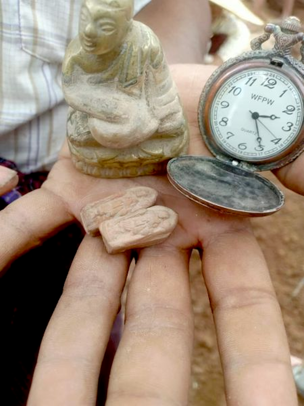 一位当地人还说道,“挖到的古物有不同时代的,种类也很多。有些人还挖到了骠时期的佛珠,还有珠宝,这些都是被运气相当好的人得到了。这些古物都不用挖很深,离地面2到3英尺就能发现。现在来挖的人越来越少了。开始的时候,几乎每天都是人满为患就像大型聚会一样,各种各样的人都有。如果你要交易手中的古物,你旁边随时有人准备着购买。”