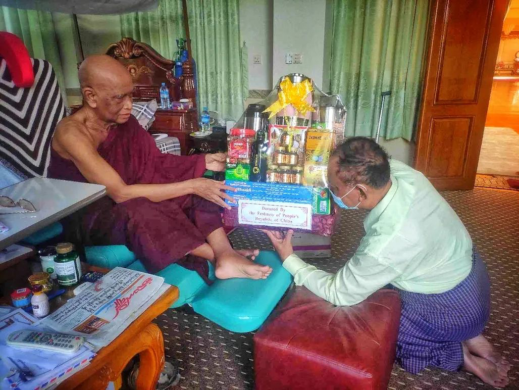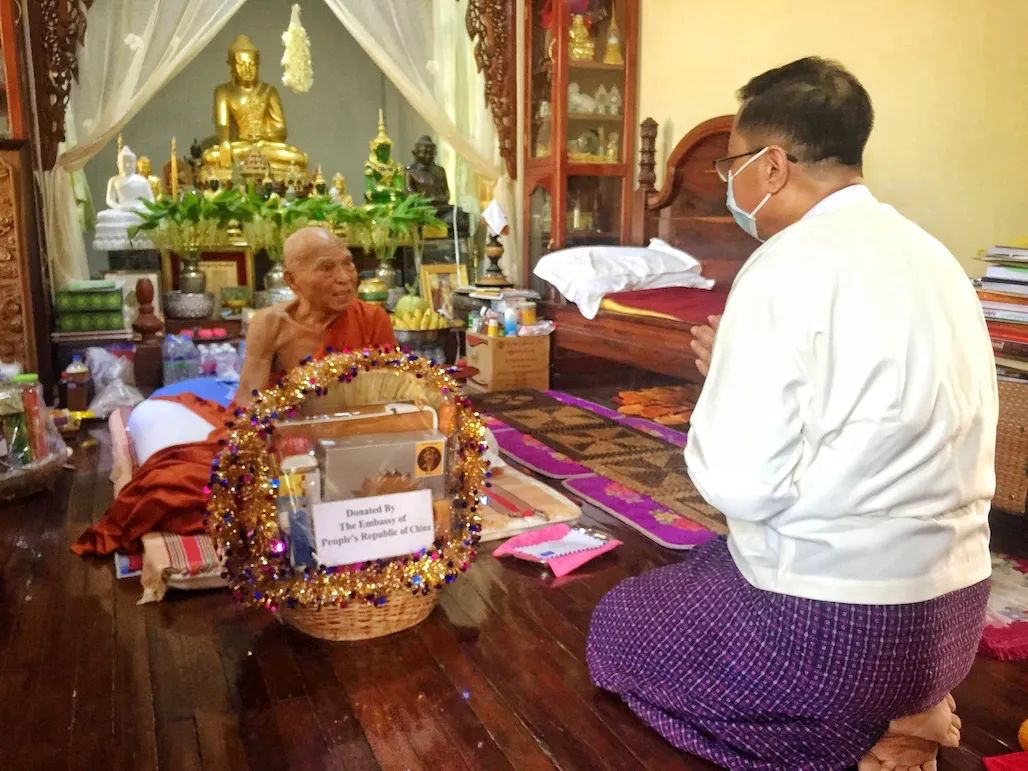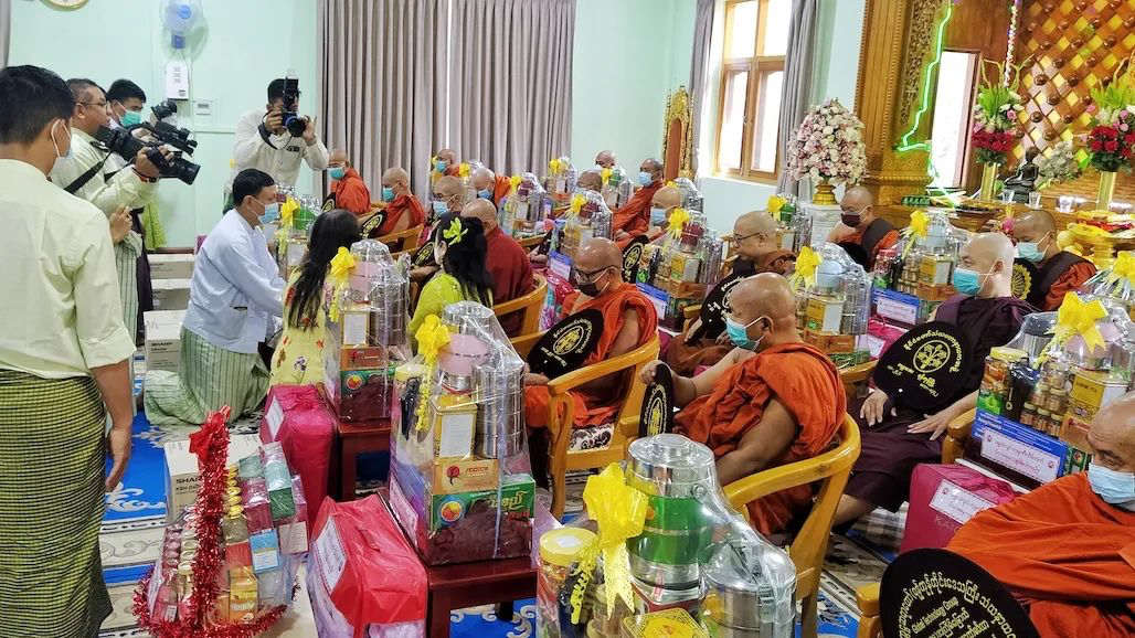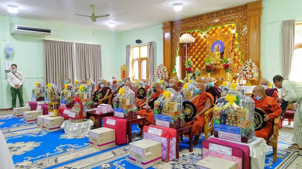 中国驻缅甸大使馆、缅中佛教交流协会共同举办献袈裟节供僧活动