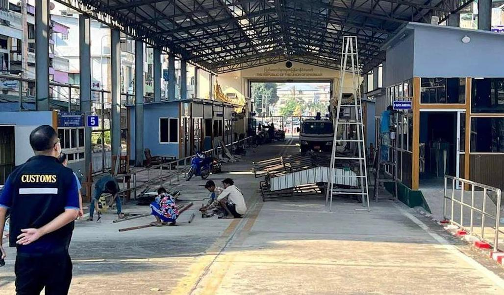 目前,泰方官员正在清扫桥梁,整修部分区域、粉刷油漆等,而在湄索入口处对办公大楼进行清洗。